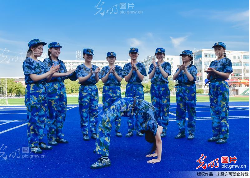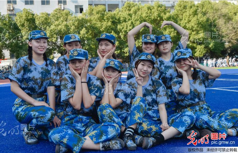 2021年9月3日,best365中国官方网站2021级新生在军训休息时间创意动作留下青春的身影。