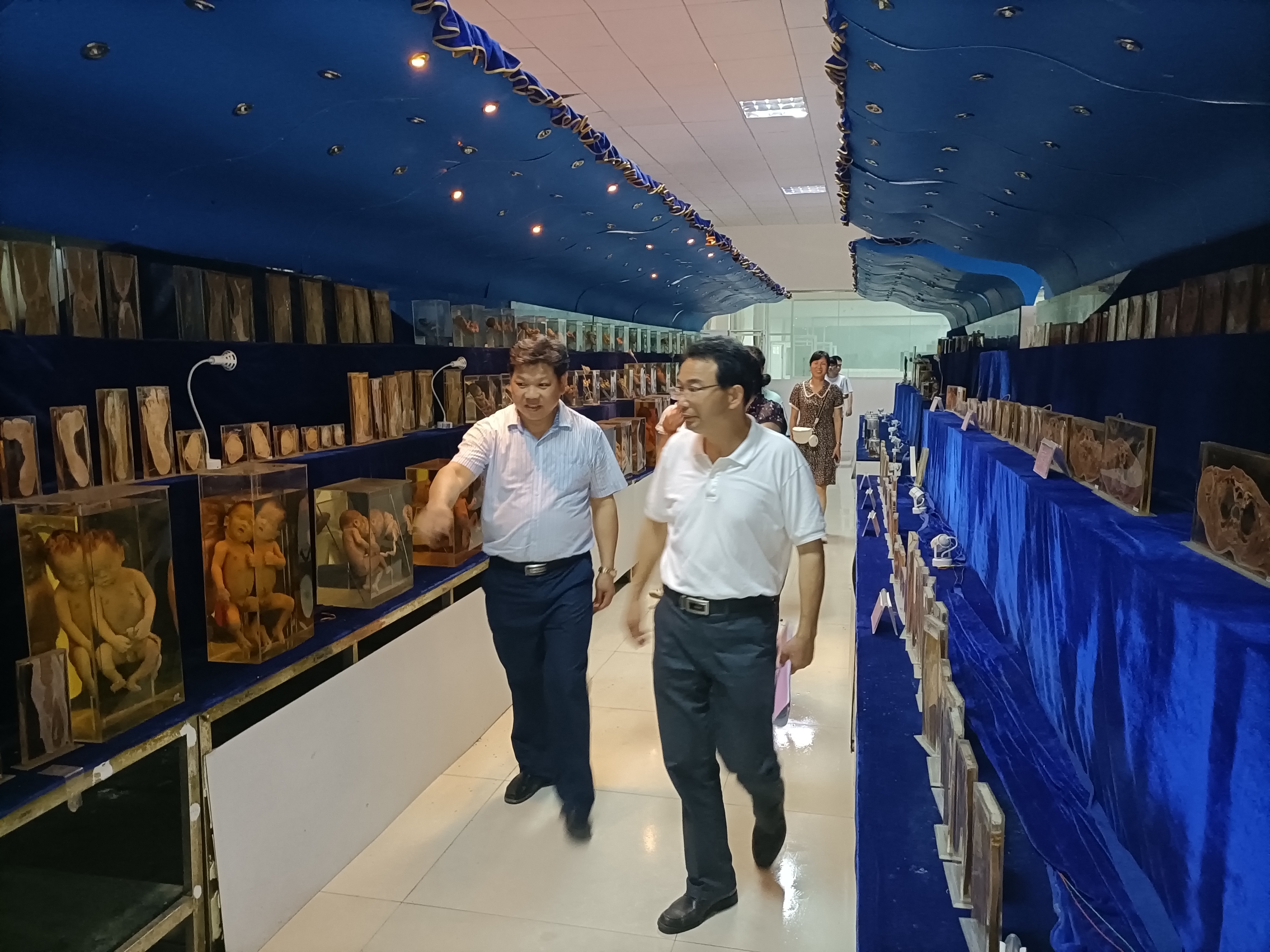 在刘秋菊、彭文武的陪同下,石国勇察看了校园环境,考察了护理学院1-5层实训实验室,重点察看了生命馆、显微镜室、护理基础实训室等。