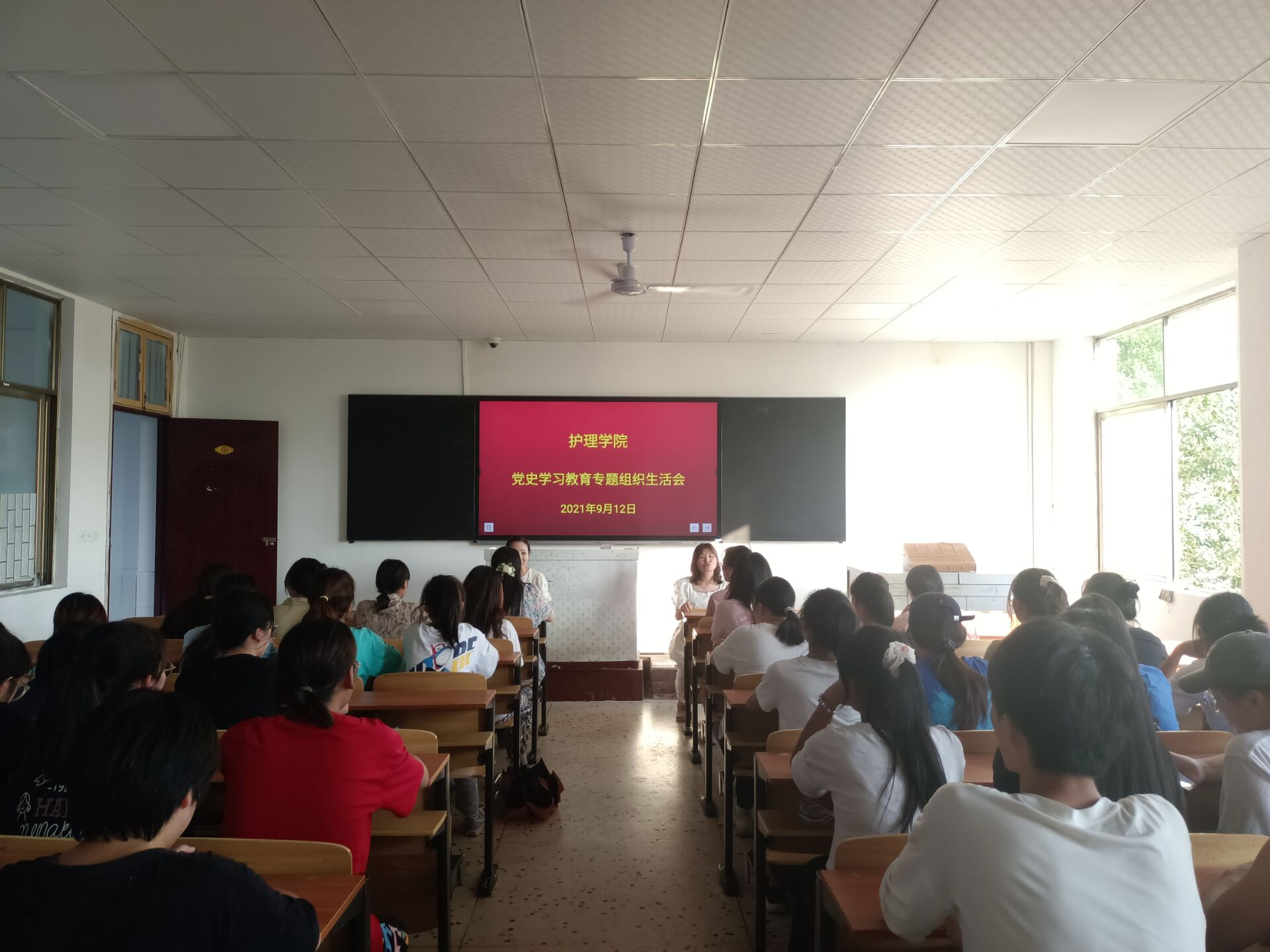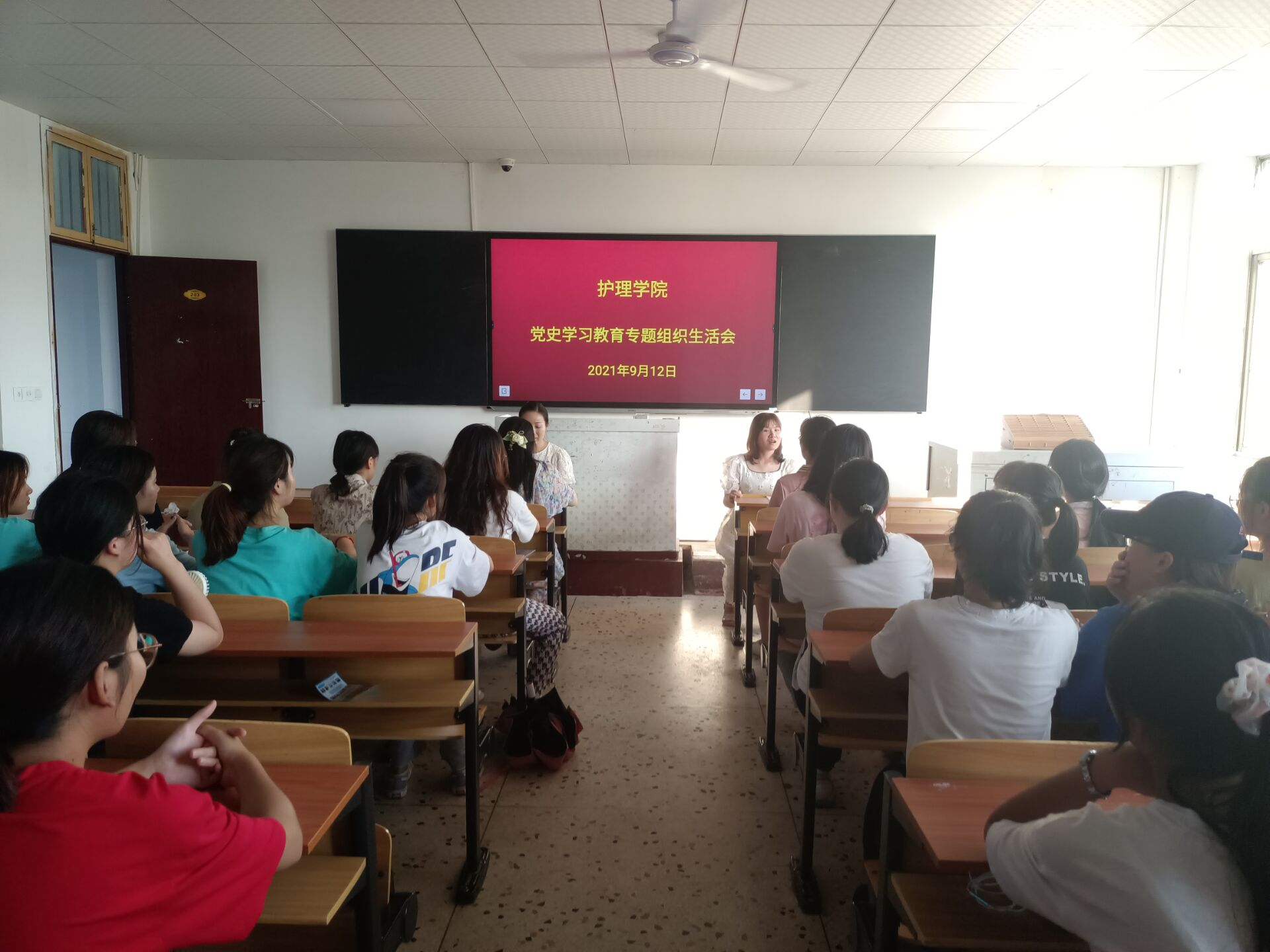 为认真贯彻落实民主精神,全面加强护理学院党总支建设,进一步提高护理学院党总支凝聚力,营造团结、和谐、稳定的氛围,护理学院学生党支部于2021年9月12日下午在教学楼203教室开展“学党史、悟思想、办实事、开新局”专题组织生活会。护理学院党总支书记邓丽,党总支副书记兼团总支书记肖桂香,及护理学院全体学生党员参加,会议由学生党支部书记贺九芳主持。