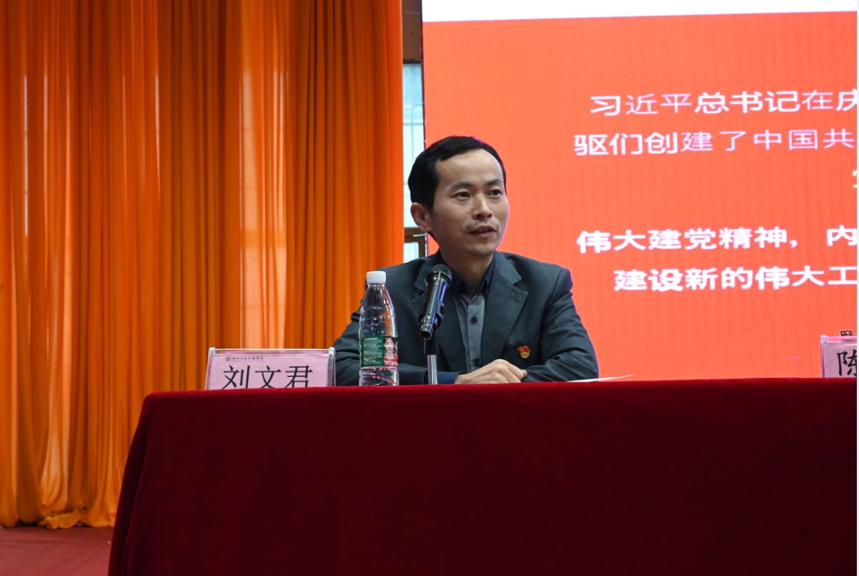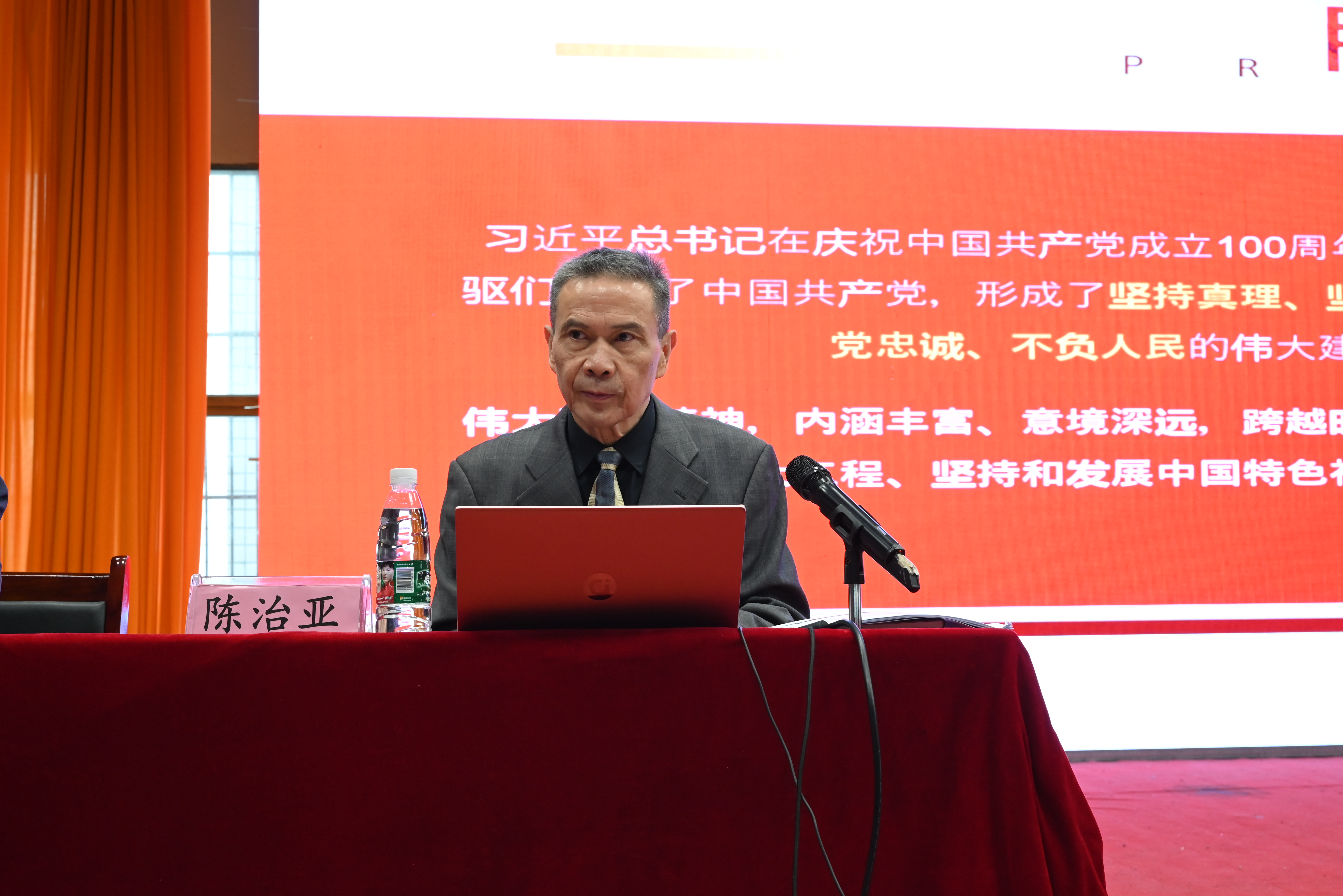 陈治亚从“伟大建党精神形成的基础和条件,伟大建党精神的深刻内涵,伟大建党精神的历史源头和高度凝练,在新时代弘扬伟大建党精神,以伟大建党精神加强党的建设”等五个方面对伟大建党精神进行了全方位的解读。他以历史为主线,结合自己对党的认识、入党的思考和初心,通过梳理百年党史,深刻阐述了中国共产党从新民主主义革命时期、社会主义革命和建设时期、改革开放时期、特色社会主义新时代四个阶段的历史,全面回顾了党的百年奋斗历程和取得的丰功伟绩,生动诠释了中国共产党的初心和使命。在“以伟大建党精神加强党的建设”中,陈治亚建议加强学校党的建设,要扎扎实实从政治建设、思想建设、组织建设、作风建设、纪律建设和制度建设六个方面开展。他对新时期如何加强best365官网党的建设,结合自身工作经历,提出了具体要求。陈治亚指出,伟大的建党精神集中体现了党的坚定信念、根本宗旨、优良作风,凝聚着中国共产党人艰苦奋斗、牺牲奉献、开拓进取的伟大品格,深深融入我们党、国家、民族、人民的血脉之中,为我们立党兴党强党提供了丰厚滋养。最后,陈治亚对入党积极分子提出三点希望:一是要做一个合格的党员,首先要做一个合格的人;二要学会对话,即学会和自己对话,学会和别人对话,学会和先贤对话;三是懂得爱和尊重,坚定理想信念,学好专业知识,努力成为堪当民族复兴重任的时代新人。