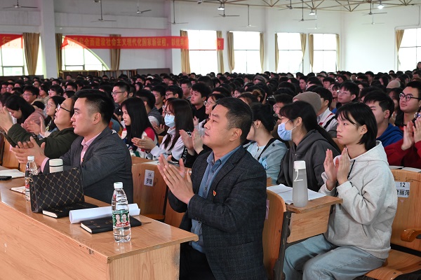 本网讯(记者 摄影 赵红深) 为了加强入党积极分子的党性意识教育,提高入党积极分子的政治思想素质,10月17日下午,校长陈治亚在大学生活动中心为学校第33期入党积极分子培训班学员讲授《深入学习重要讲话,弘扬伟大建党精神》专题党课。校党委书记、督导专员刘文君主持党课会议。