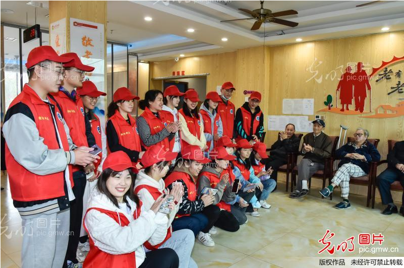 2021年10月13日,爱心志愿者们为老人们即兴表演了精彩的文艺节目,风趣幽默的演出引得老人们情不自禁地眯开眼笑,拍起巴掌,给平日清静的敬老院带来了阵阵欢歌笑语。https://ucenter.pic.gmw.cn/picDetails/11651266.html
