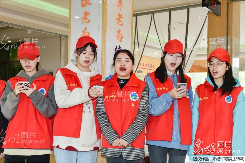 2021年10月13日,赵春香老师带领爱心志愿者们现场表演文艺节目,甜美的歌声赢得老人们阵阵掌声,整个敬老院随着师生志愿者的到来洋溢着快乐、温馨的气氛,老人们欣慰地享受着同学们带来的关爱和幸福,纷纷伸出大拇指点赞。https://ucenter.pic.gmw.cn/picDetails/11651267.html