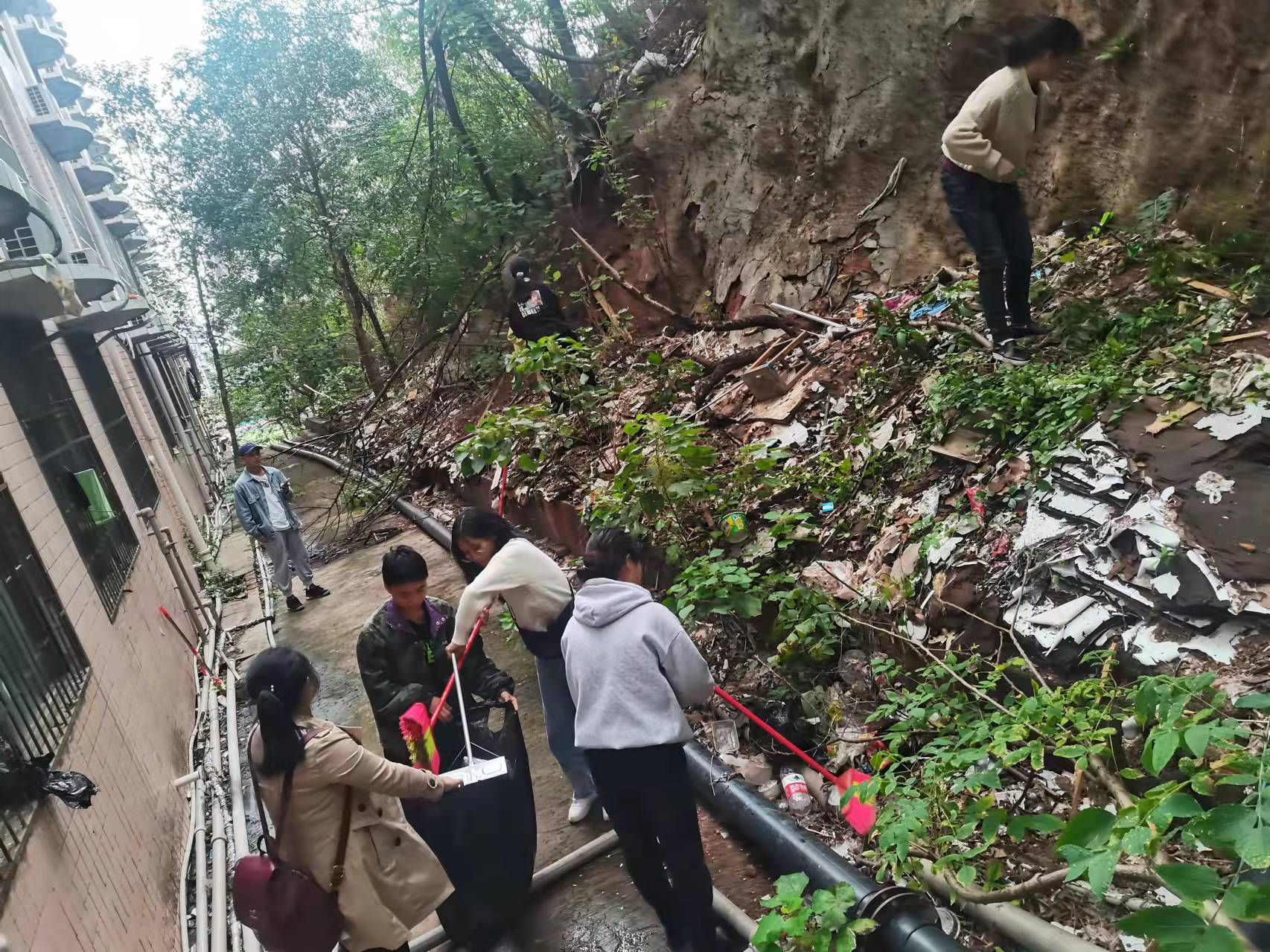 在本期培训班的社会实践活动中,学院书记、副书记,辅导员带领全体入党积极分子一起打扫学院卫生,发扬不怕苦不怕累的精神,为全校师生创造一个优美的学习、工作环境。