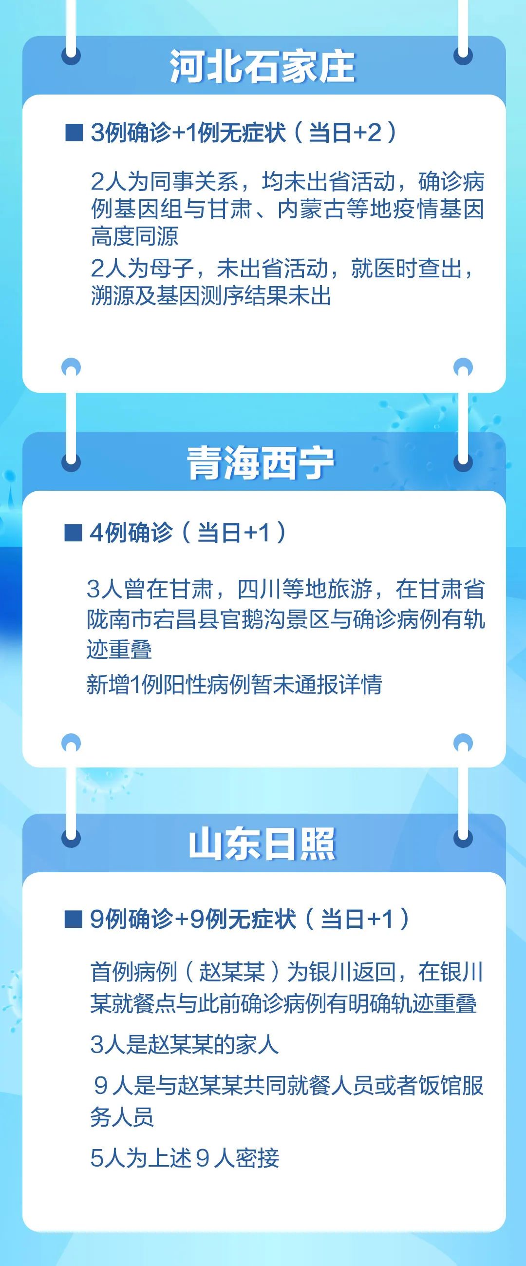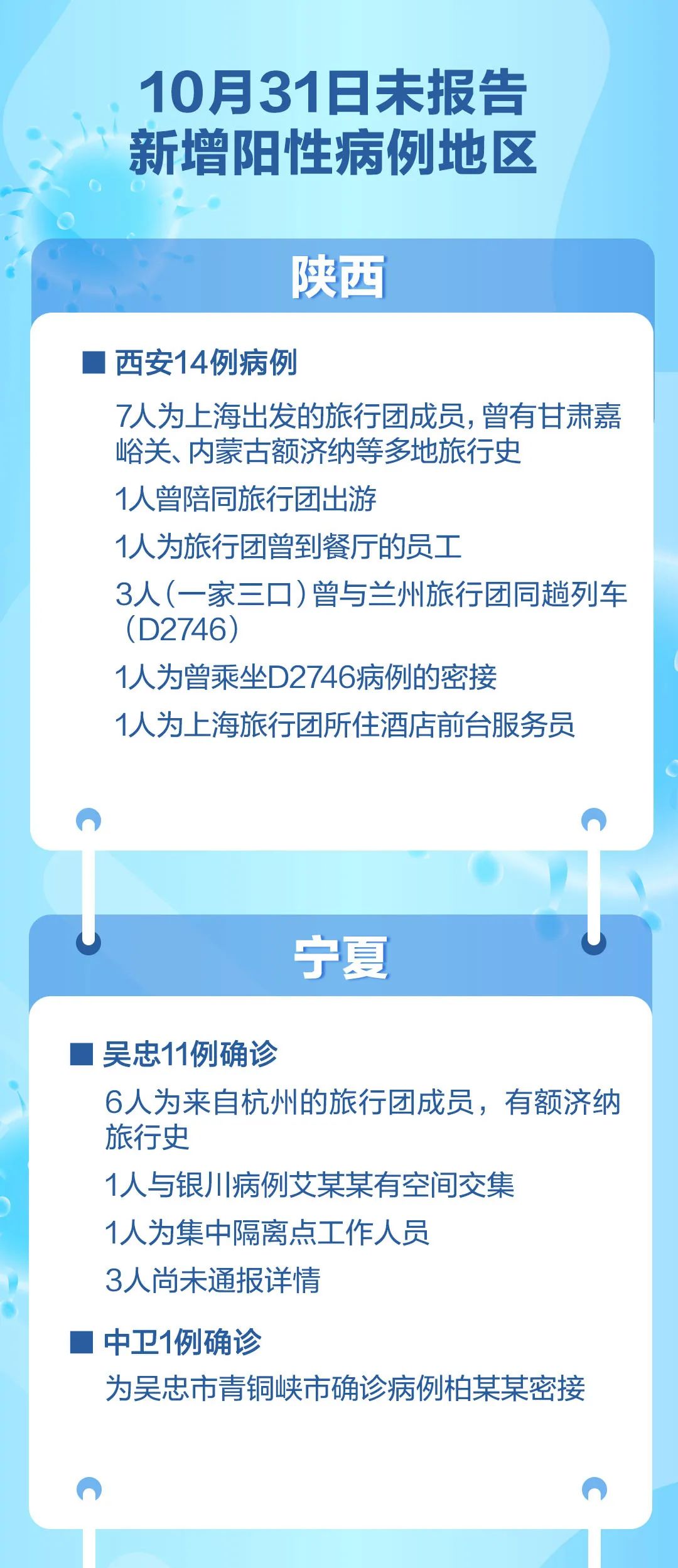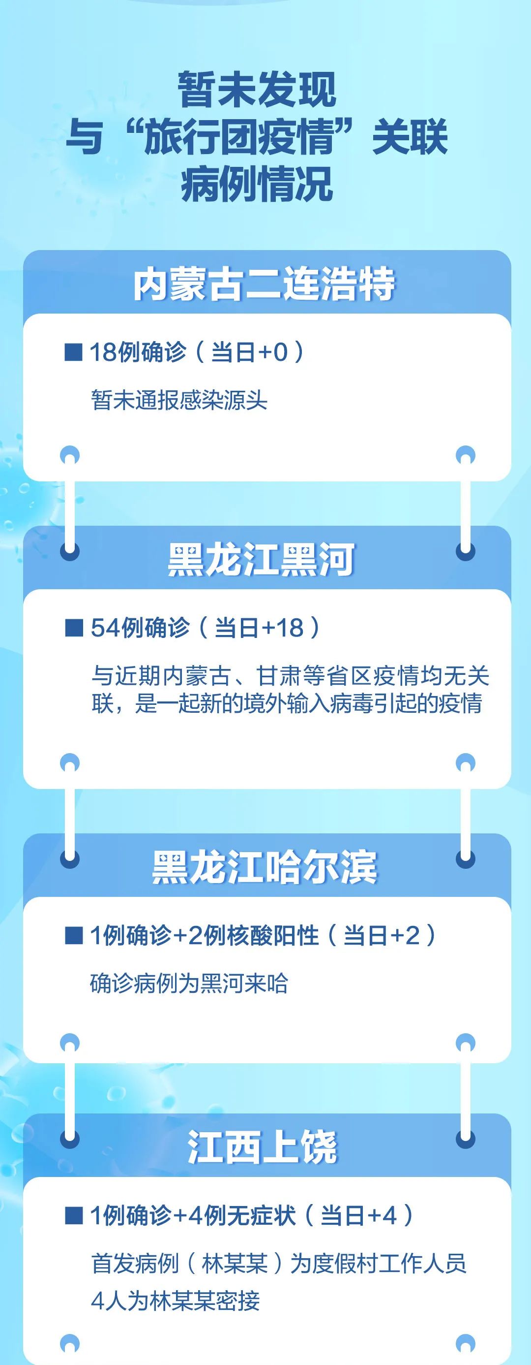 此外,黑龙江哈尔滨、黑河,江西上饶和浙江杭州等地10月31日也报告新增阳性病例: