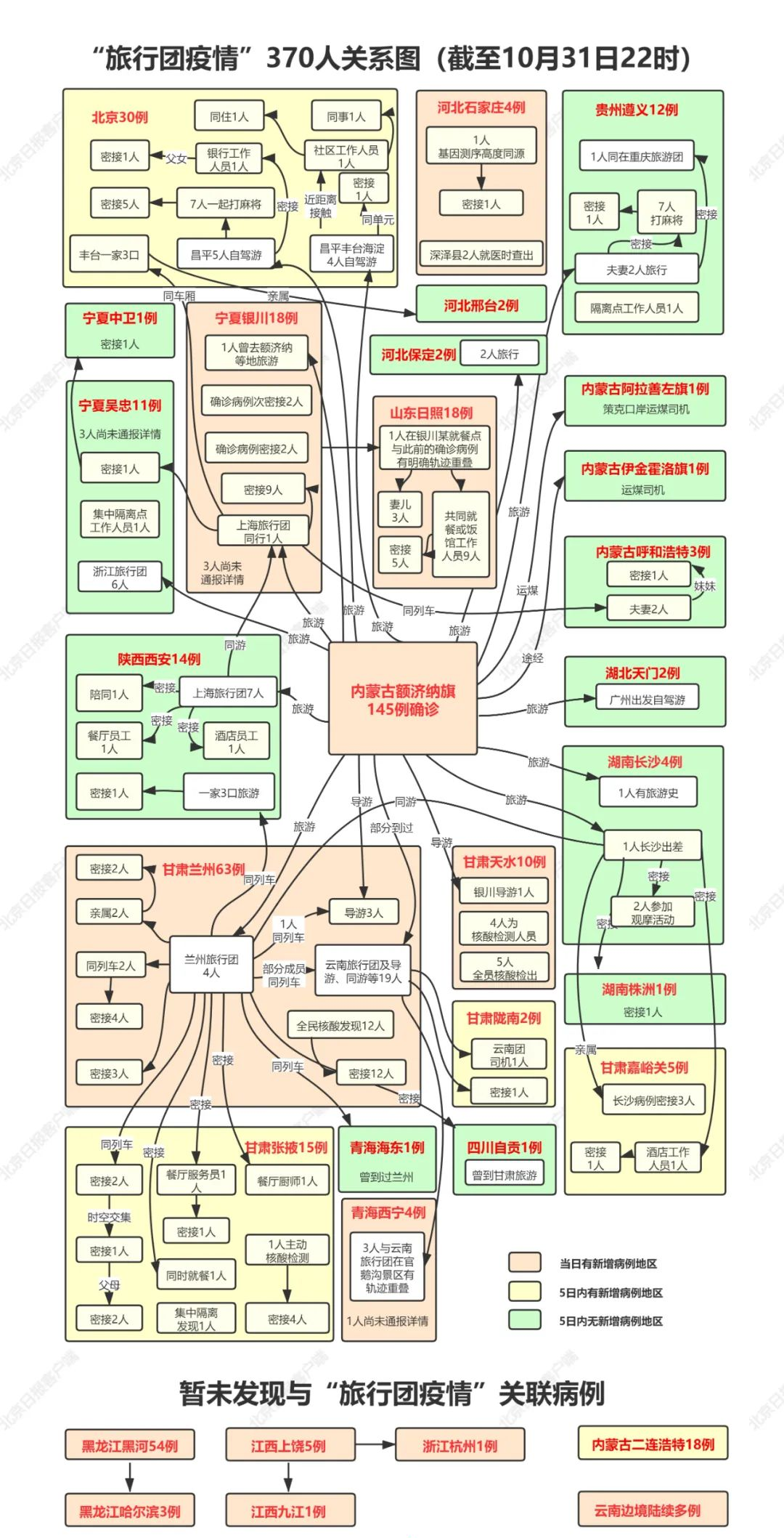 (本网讯 通讯员彭雨情 李麦 胡增燕)两周时间内,全国报告新增本土阳性病例超400例,其中370例阳性感染者的轨迹或基因测序与内蒙古、甘肃等地疫情有直接或间接的关联,波及12个省区市。