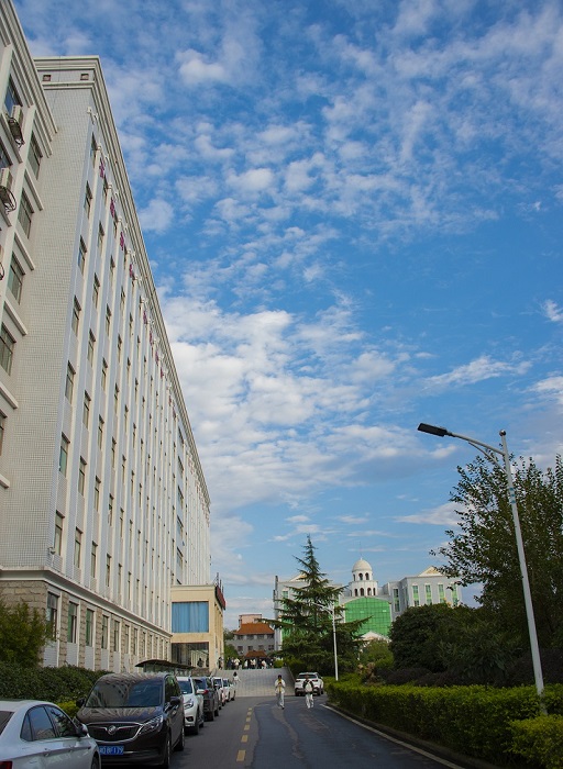 本网讯(摄影 李建华)11月10日,初冬的校园,暖阳高照,色彩斑斓满园芳……学校特色建筑在蓝天白云的映衬下美丽如画。