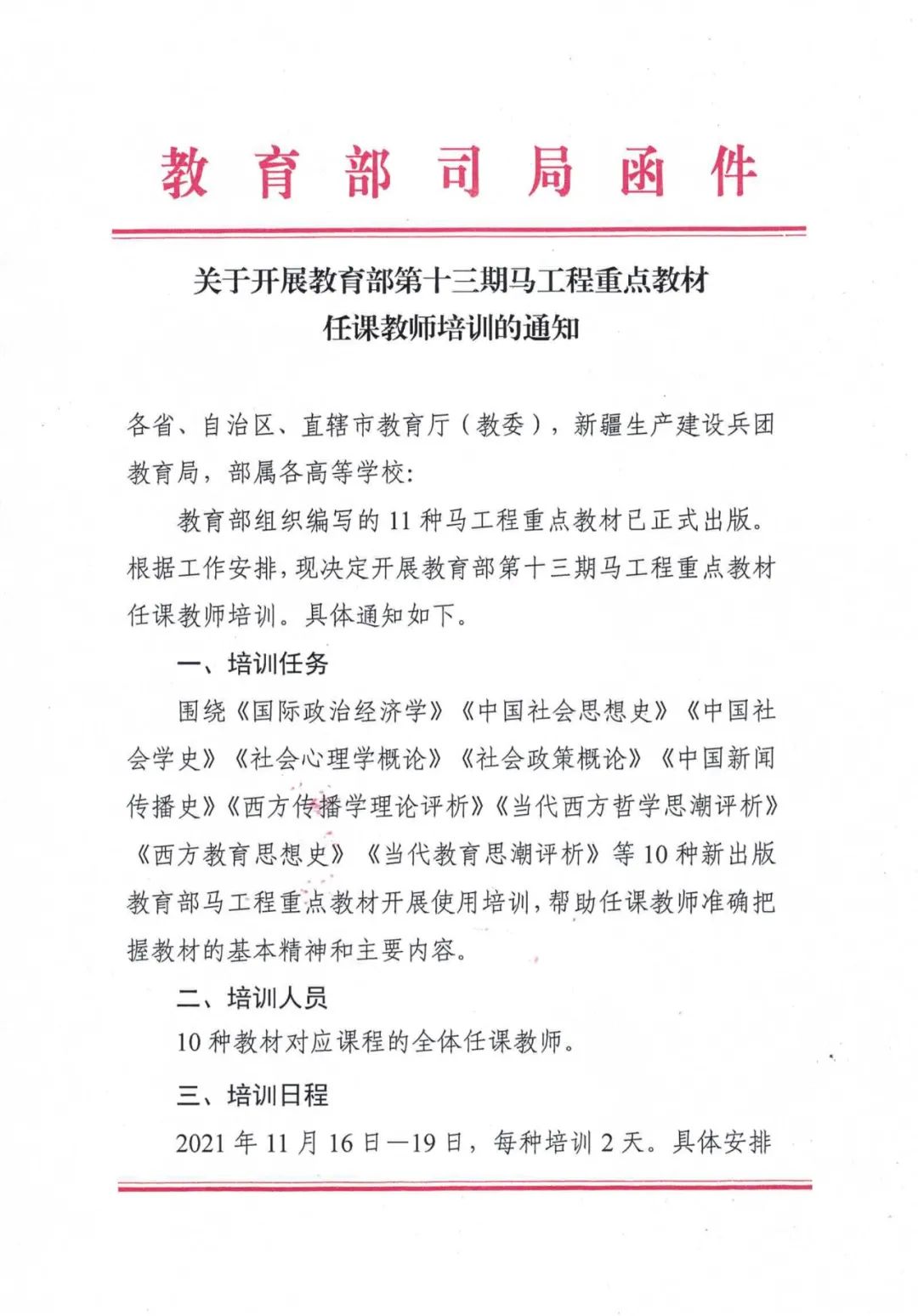 转发:关于展开教育部第十三期马工程重点教材任课教师培训的通知