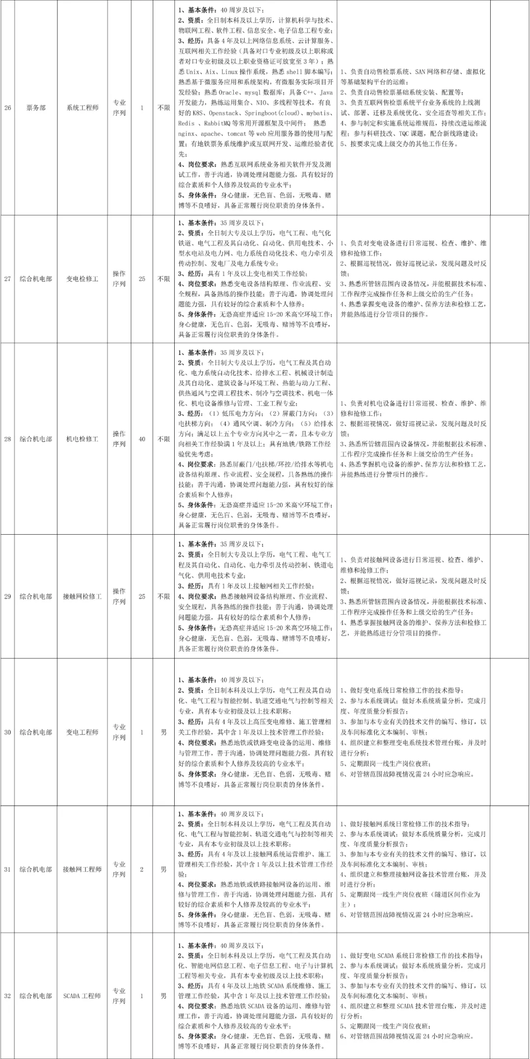 各岗位具体招聘条件详见附件:《运营公司2021年第二批招聘需求表》。