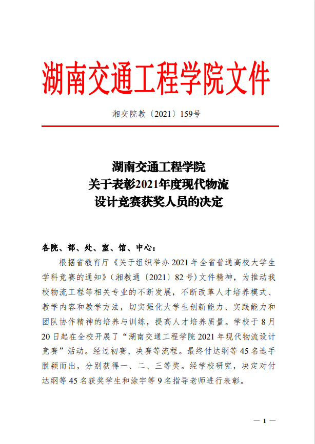 best365中国官方网站关于表彰2021年度现代物流设计竞赛获奖人员的决定
