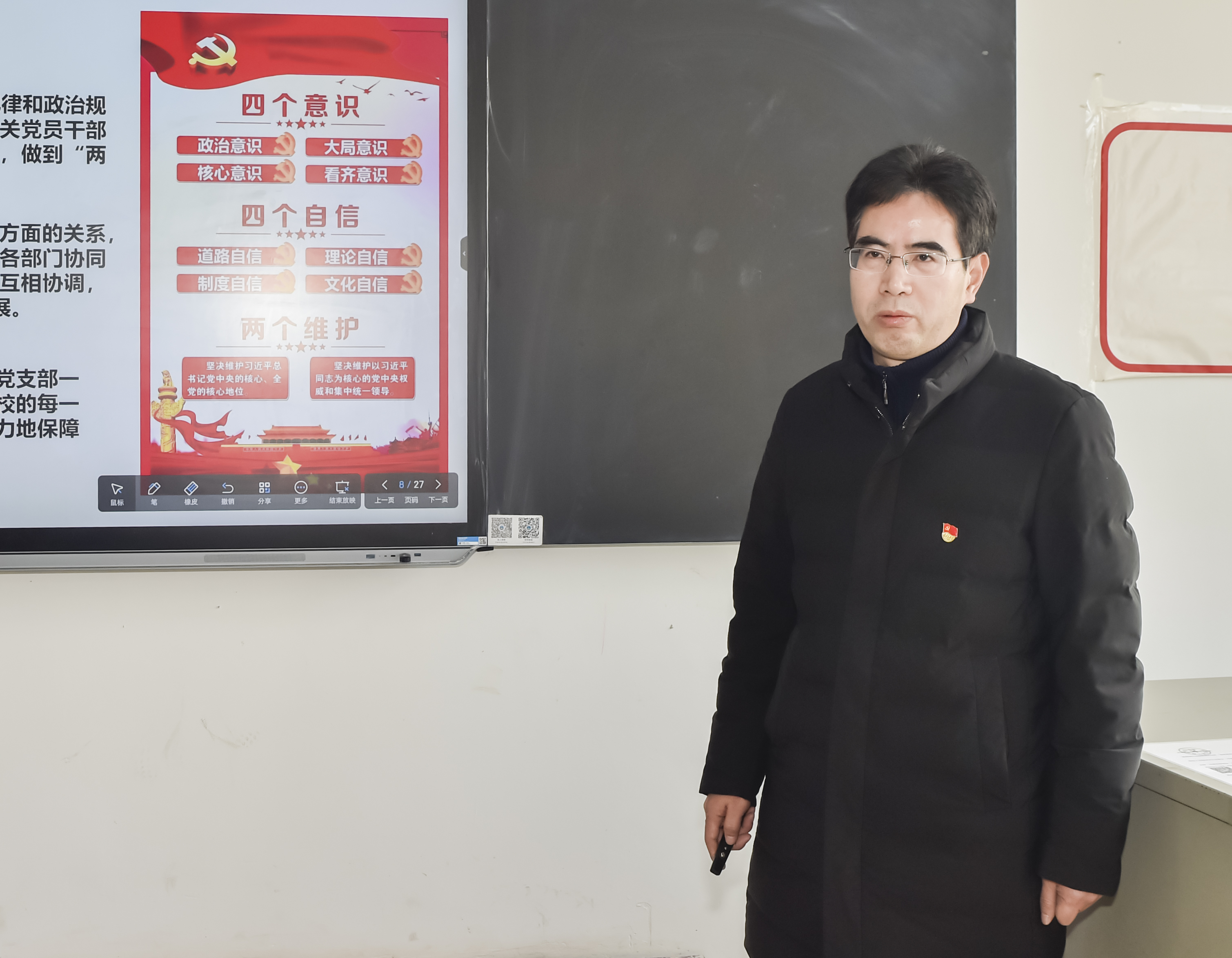 就下一步如何加强基层党组织建设工作,刘文君提出,一是要坚持党的政治建设,要把学习贯彻习近平新时代中国特色社会主义思想作为长期的首要政治任务,筑牢“四个意识”,坚定“四个自信”,坚决做到“两个维护”,坚定捍卫“两个确立”;二是要坚持立德树人根本任务,要以推进“三全育人”和师德师风建设为抓手,切实提高人才培养质量;三是要持续推进党委廉政建设,强化廉洁自律意识,狠抓作风建设,把纪律和规矩挺在前面,营造风清气正的校园环境。