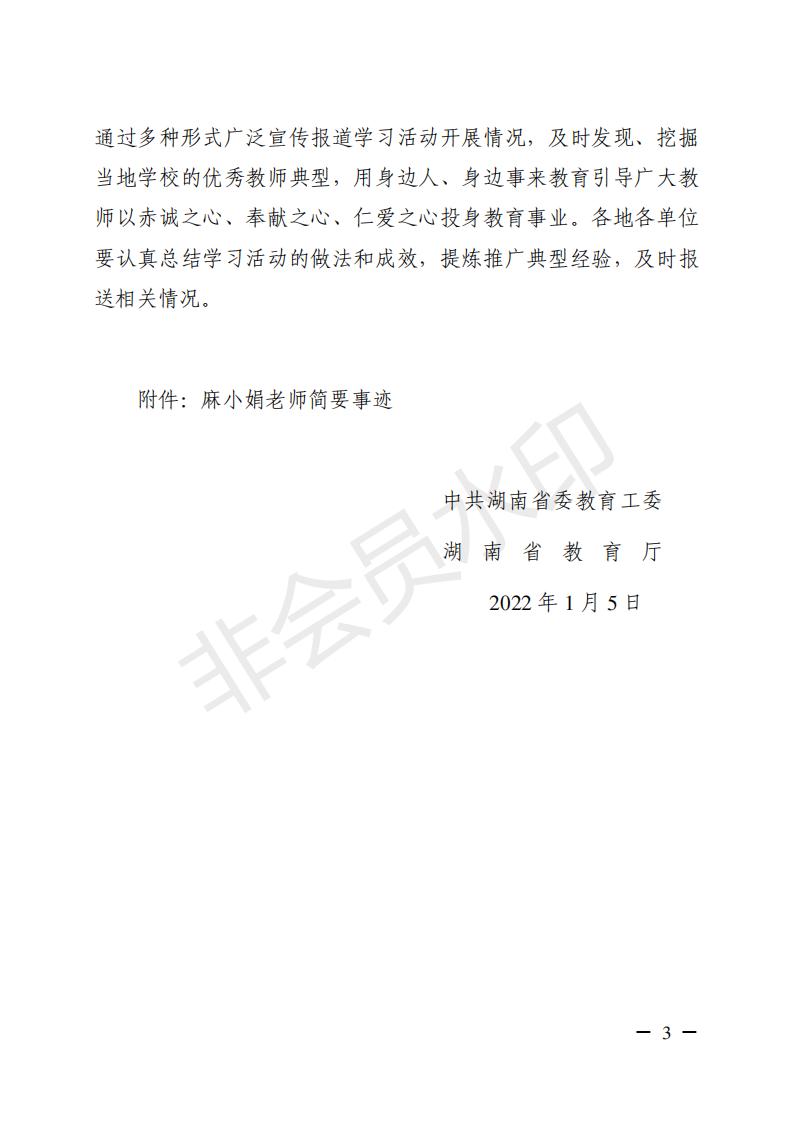 转发关于在全省教育系统深入开展 向麻小娟老师学习活动的通知