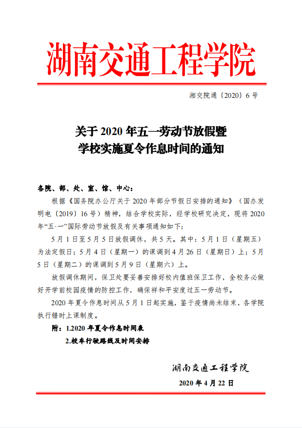 关于2020年五一劳动节放假暨学校实施夏令作息时间的通知