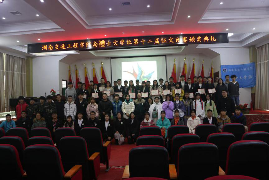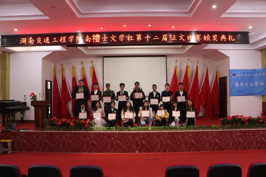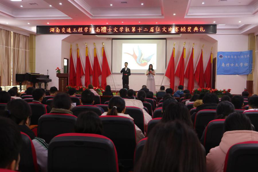 本网讯(通讯员 胡可)12月1日,南禮士文学社第十二届征文比赛“看你我青春之际,扬交院学子风采”颁奖典礼在航母楼一楼会议室隆重举行。校党委委员、党务工作部部长、护理学院党总支书记兼南禮士文学社指导老师邓丽,图书馆老师张海兵、万魏,共青团best365中国官方网站委员会李丽平,衡高文委主席唐震民,社团联合会负责人唐果及学校其他社团负责人出席颁奖典礼,全体社团成员到会。