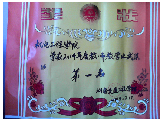 2014年12月,在学院随堂教学比武中,我院派选了冯小康、李波波两位老师参加,获得了一等奖、二等奖各一名,并获得了集体奖第一名的好成绩。