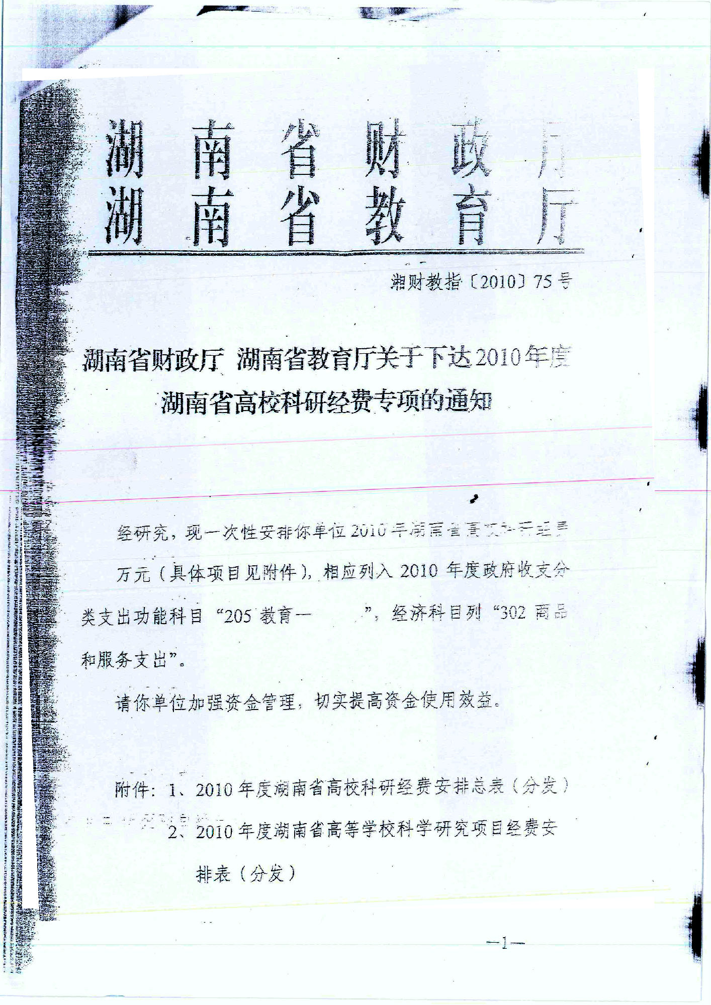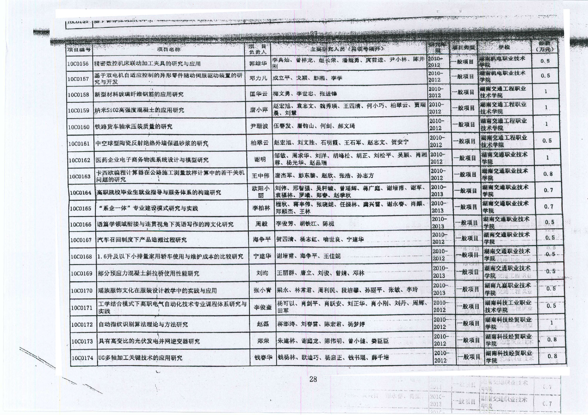 2010年湖南省科学研究项目立项名单