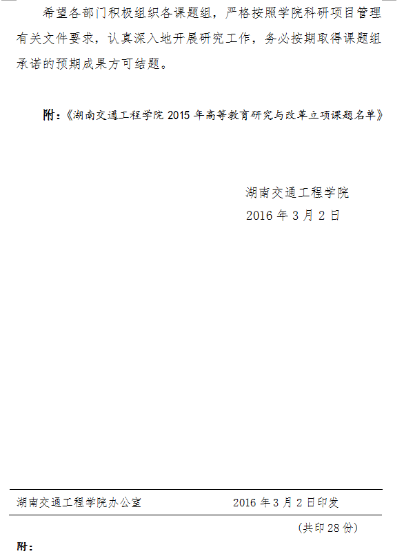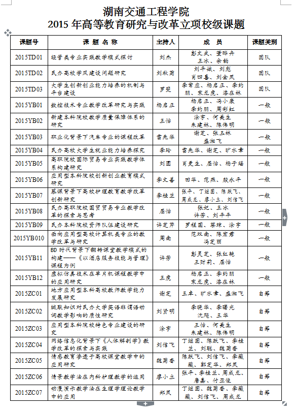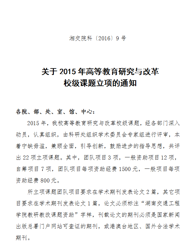 关于2015年高等教育研究与改革 校级课题立项的通知