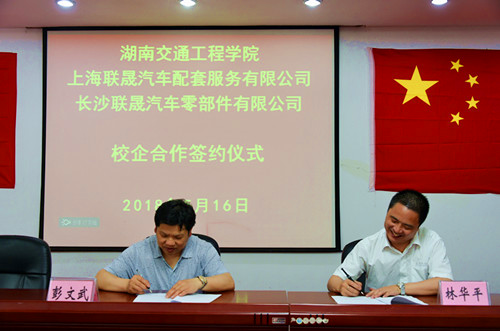 接着进行签约仪式。彭文武代表学校与上海联晟公司代表共同签订了《校企合作协议书》,并合影留念。