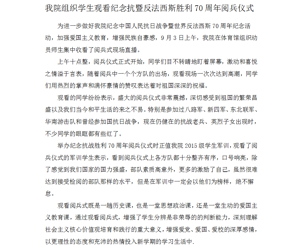 我院组织学生观看纪念抗暨反法西斯胜利70周年阅兵仪式