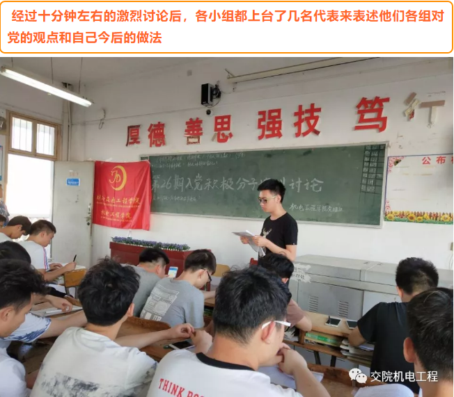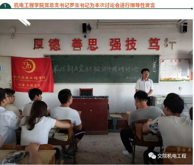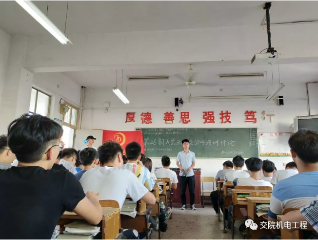 为进一步加强入党积极分子对党的基本理论知识的系统学习,提高入党积极分子的理论水平,确保新发展党员的质量,2018年5月14日,best365中国官方网站机电工程学院第26期入党积极分子在教学楼510举办2018年度入党积极分子培训学习讨论,本次讨论由机电工程学院党总支学生支部组织,党总支罗斐书记参加并发表重要讲话。第26期入党积极分子培训班学员84人全部参加。