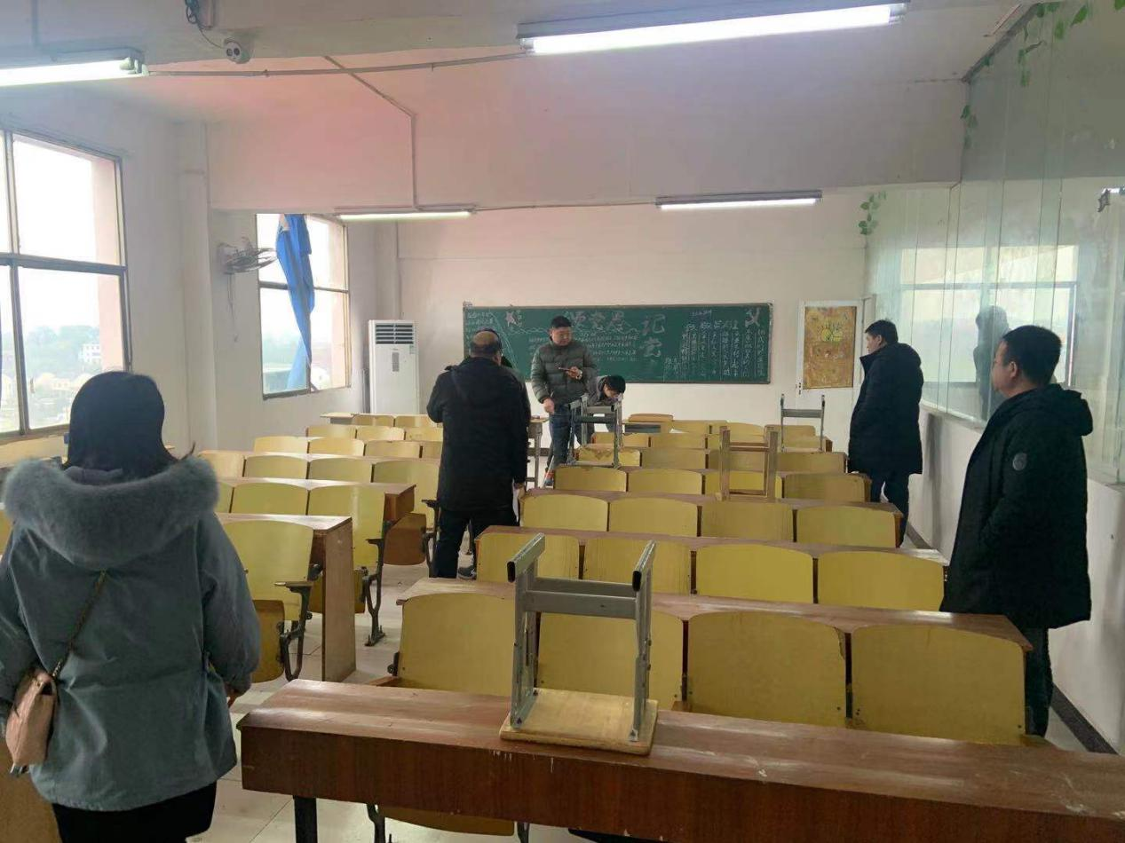 本网讯(通讯员彭雨晴 李麦 胡增燕)为科学平稳有序推进春季学期开学工作,2022年2月20日上午,交通运输工程学院党支部书记何美生、副书记何文华带领全体辅导员检查教室桌椅配备及卫生情况。按照学校要求做好开学准备工作,为学生开学提供干净舒适的学习环境。