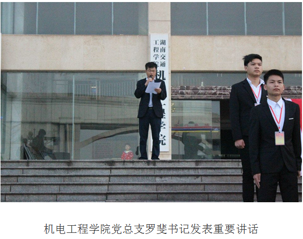 升旗礼毕,罗斐书记发表了重要讲话,他告诉大家大学阶段,学生的中心任务是学习,只有培养良好的学习习惯,不断提高综合素质,才能实现自身的全面发展。同时优良的校风对广大学生有着熏陶感染、激励导向和调节约束的作用,是大学生成长成才的重要保证,机电学风、校风的发展,需要我们共同努力。