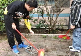 在3月13日晚上的主题班会教育之后,机电工程学院随即组织学生开展劳动教育实践活动。3月17日下午,在学校统一组织的卫生区大扫除安排下,党总支书记罗斐以及各班辅导员亲自指导学生进行劳动,通过实践劳动,现场给学生进行劳动教育。