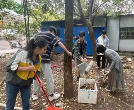 师生们在欢乐的劳动氛围中笑容甜甜收获满满!经过此次师生们的共同努力,校园内的整个面貌焕然一新。