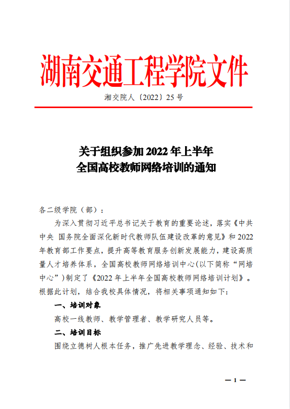 关于组织参加2022年上半年全国高校网络培训的通知
