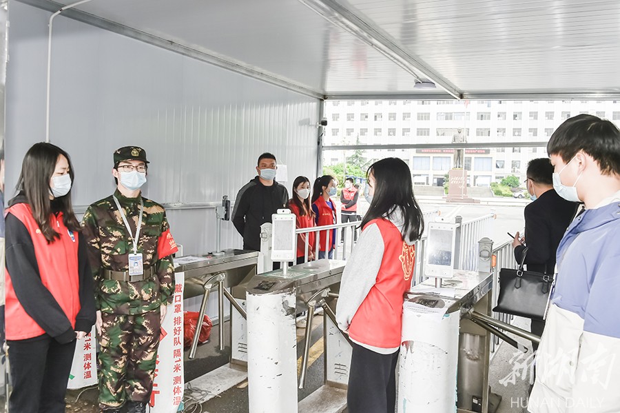 4月18日,best365中国官方网站经济管理学院党政领导深入宿舍等“党员先锋岗”防疫场所对各门岗卡点现场检查指导,用党员先锋岗的引领示范高扬“疫”线“党旗红”,护航师生“健康绿”。 李建华 摄