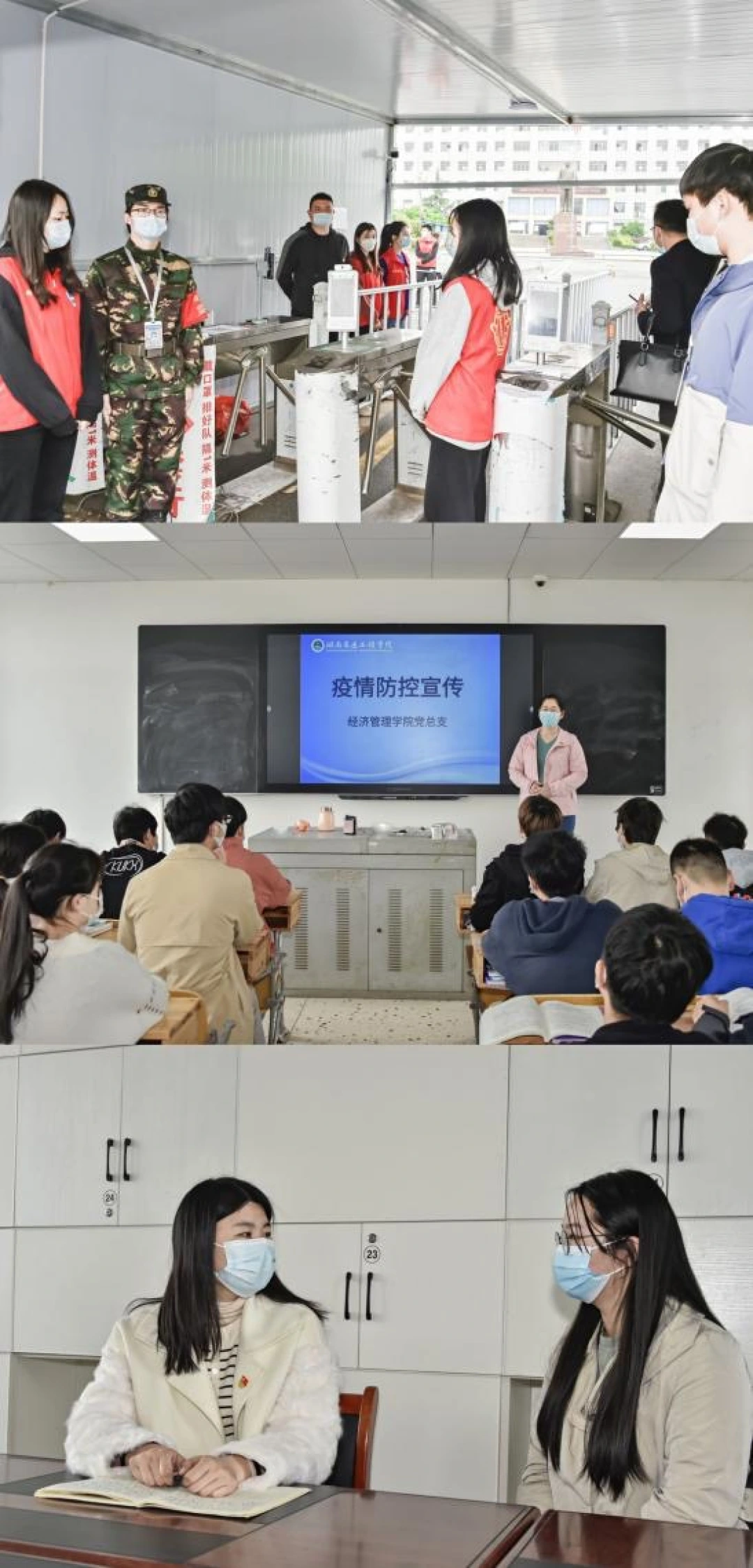 实行封闭管理以来,该院根据疫情防控网格化管理安排,设置“党员先锋岗”,由6名教师党员牵头负责,分工协作,分别负责学校田径场的卫生清理、学校门岗行人及车辆出入扫码测温、教学大楼文明劝导、学生宿舍出入管理、对学生进行心理辅导、举办防疫知识讲座主题班会,开展疫情防控宣传教育。