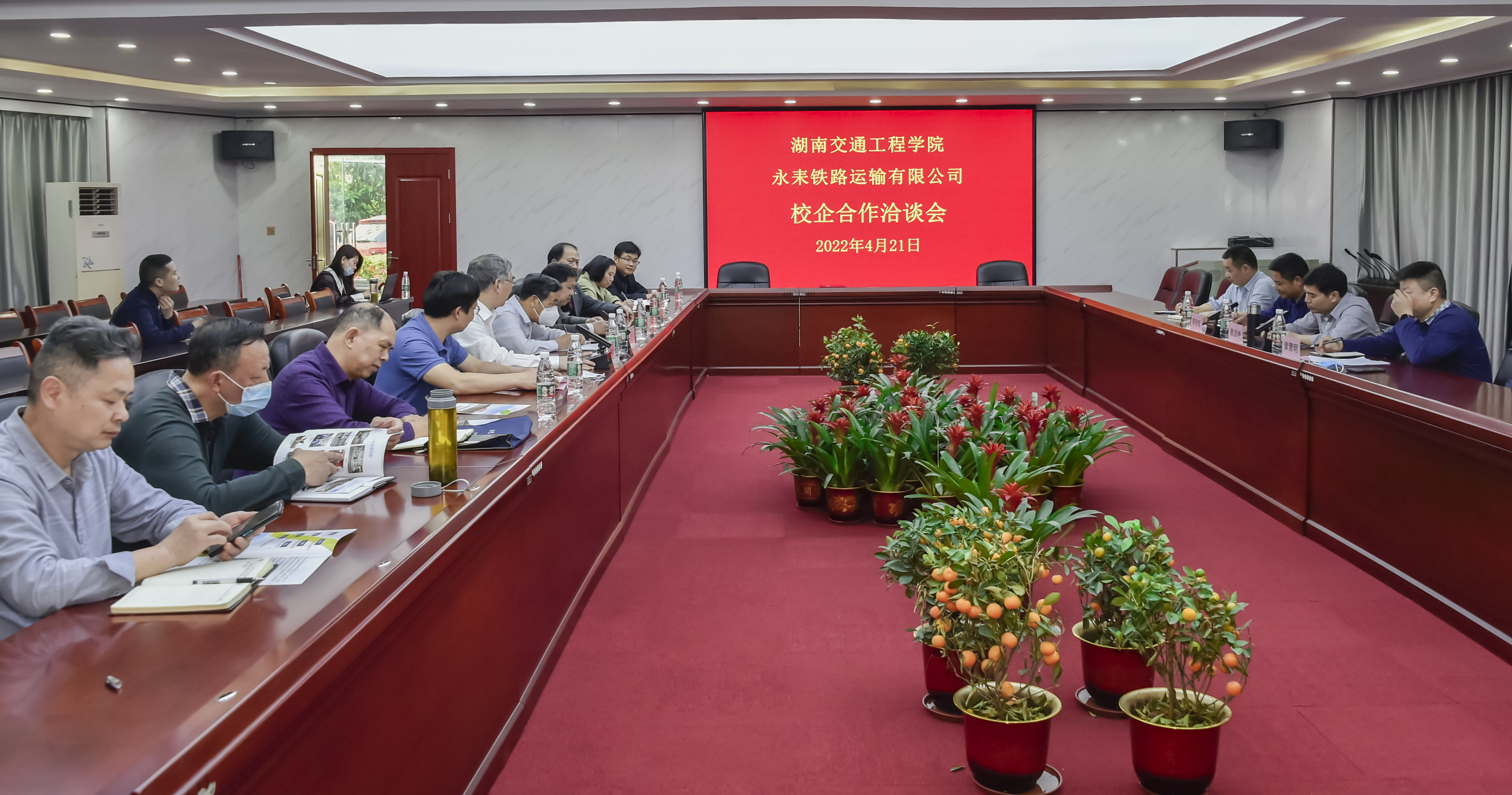 本网讯(记者 赵红深 摄影 李建华)4月21日下午,湖南永耒铁路运输服务有限公司(以下简称永耒公司)党委书记、执行董事袁浚峰,办公室主任曾慧明、运输部部长陈利军一行3人来best365官网洽谈深化校企合作事宜。best365官网董事长刘福生、常务副校长彭文武、副校长樊晓平,创新创业学院院长何美生、交通运输工程学院院长罗迎社、电气与信息学院院长杨兵初、机电工程学院院长吴义虎、教务处副处长黄玲娟参加洽谈。洽谈会在学校体育馆103会议室举行,樊晓平主持。