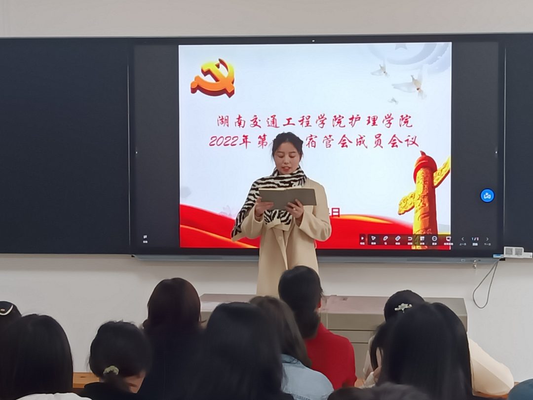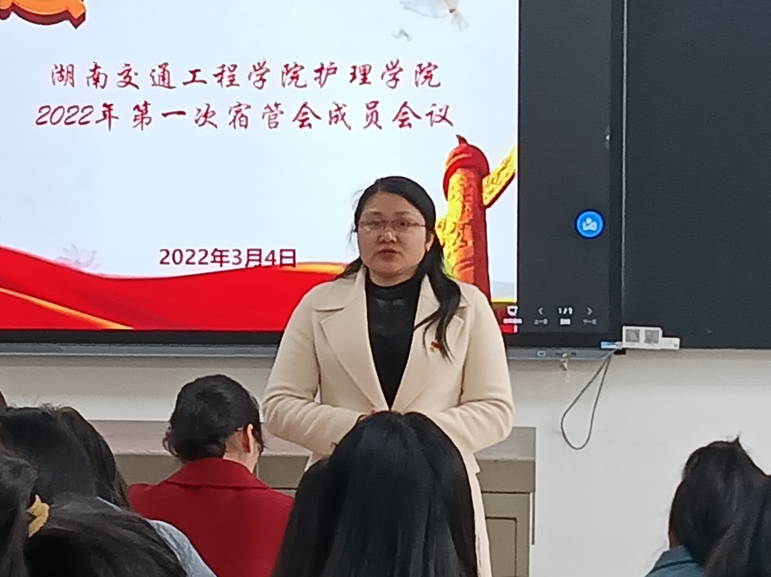 为了进一步加强学生宿舍管理,营造良好的宿舍氛围。护理学院于3月4日中午,在教楼201教室召开2022年第一次学生宿舍自治管理委员会成员会议。学院党总支书记邓丽、副书记肖桂香、十四栋学生社区党支部书记刘娣、十四栋、二十二栋学生党员和学生自治管理委员会代表参加会议。