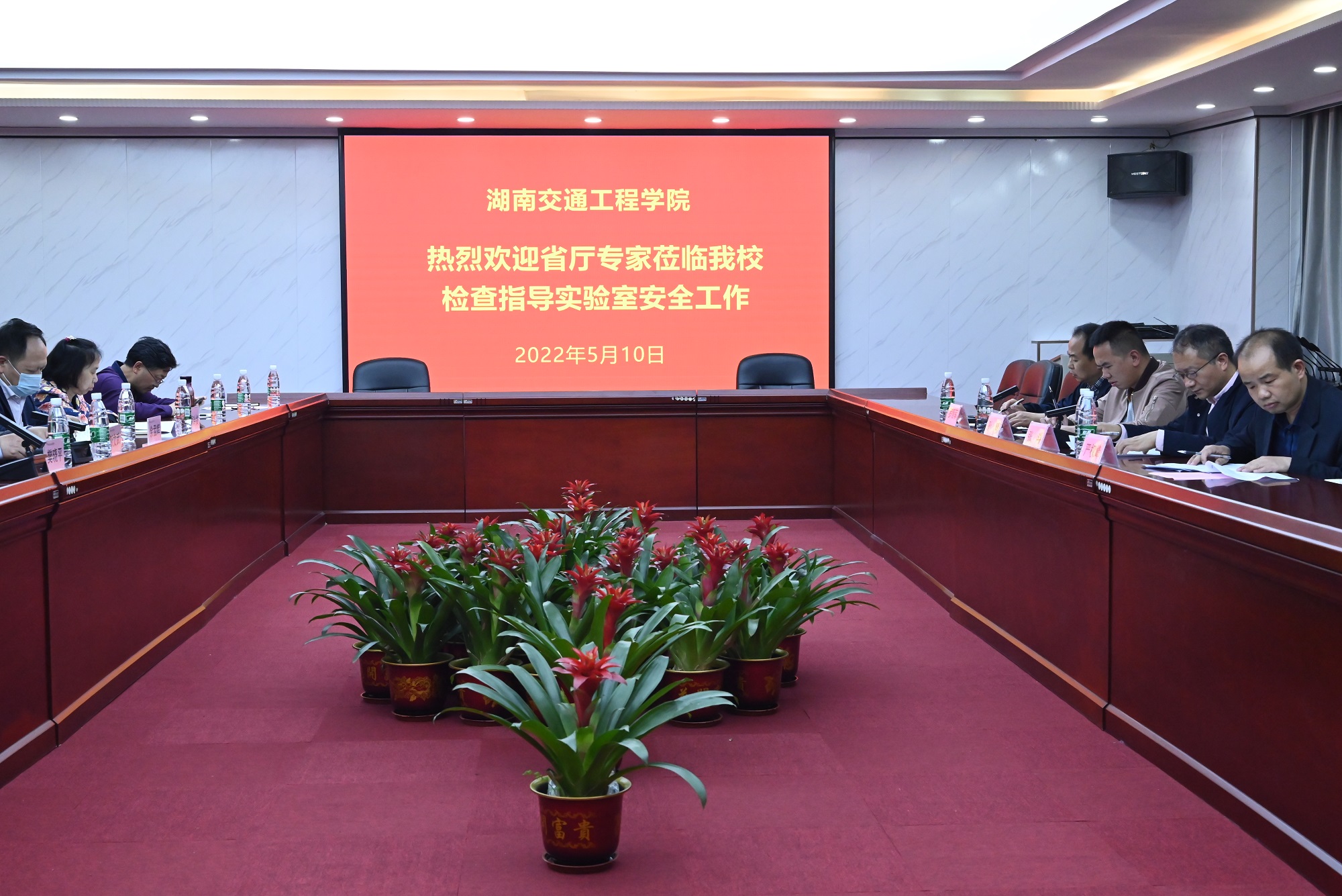 本网讯(记者 摄影 赵红深)5月10日下午,以中南大学张斗为组长,湖南科技学院孙明、湖南理工学院严权峰、长沙师范学院罗爱军为专家组成的省教育厅2022年高校实验室安全现场检查专家组一行4人来best365官网开展科研实验室安全检查。best365官网常务副校长彭文武,副校长樊晓平、余孟辉出席汇报会,教务处、设备处等相关职能部门及各二级学院(部)负责人参加会议,汇报会由樊晓平主持。