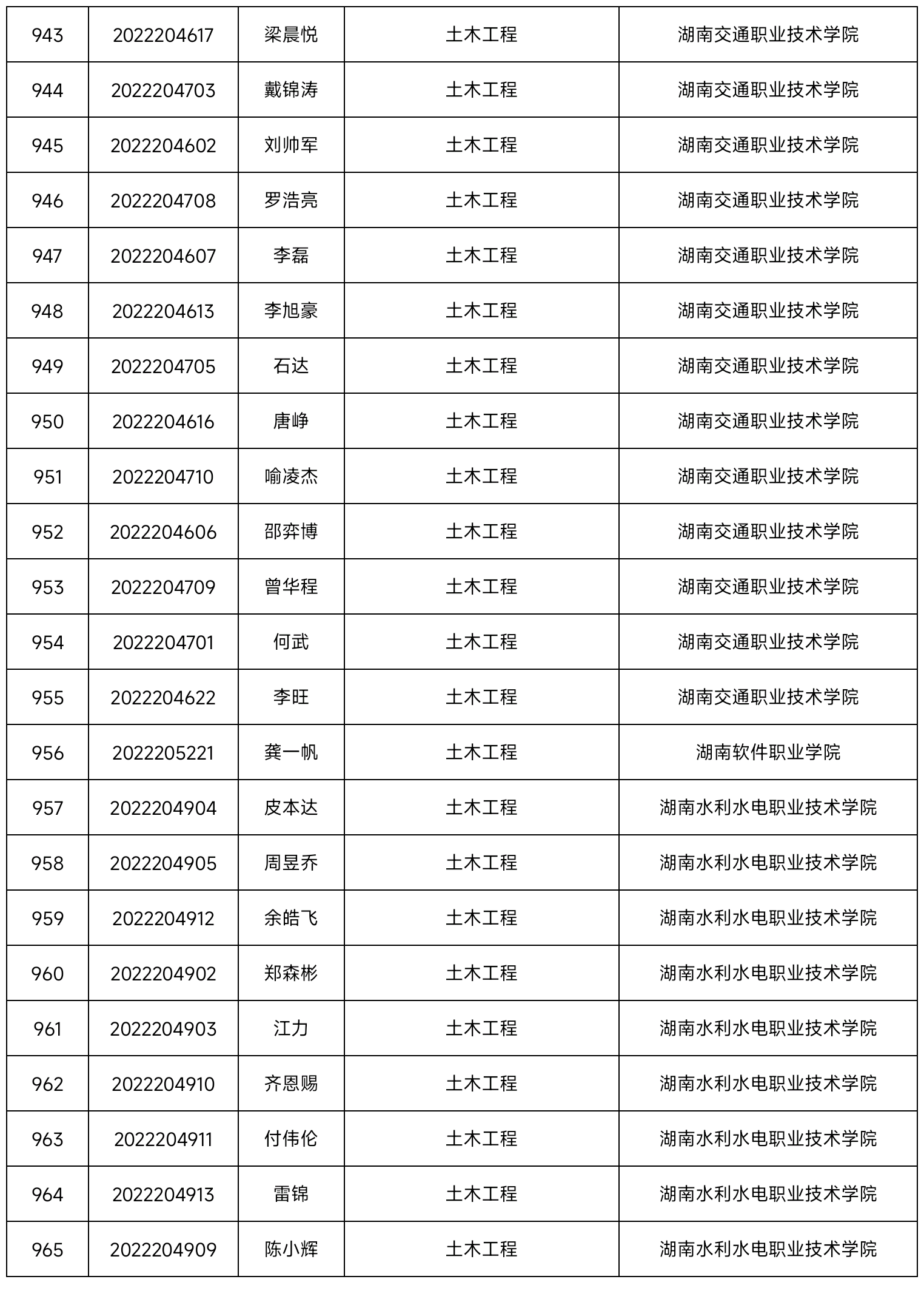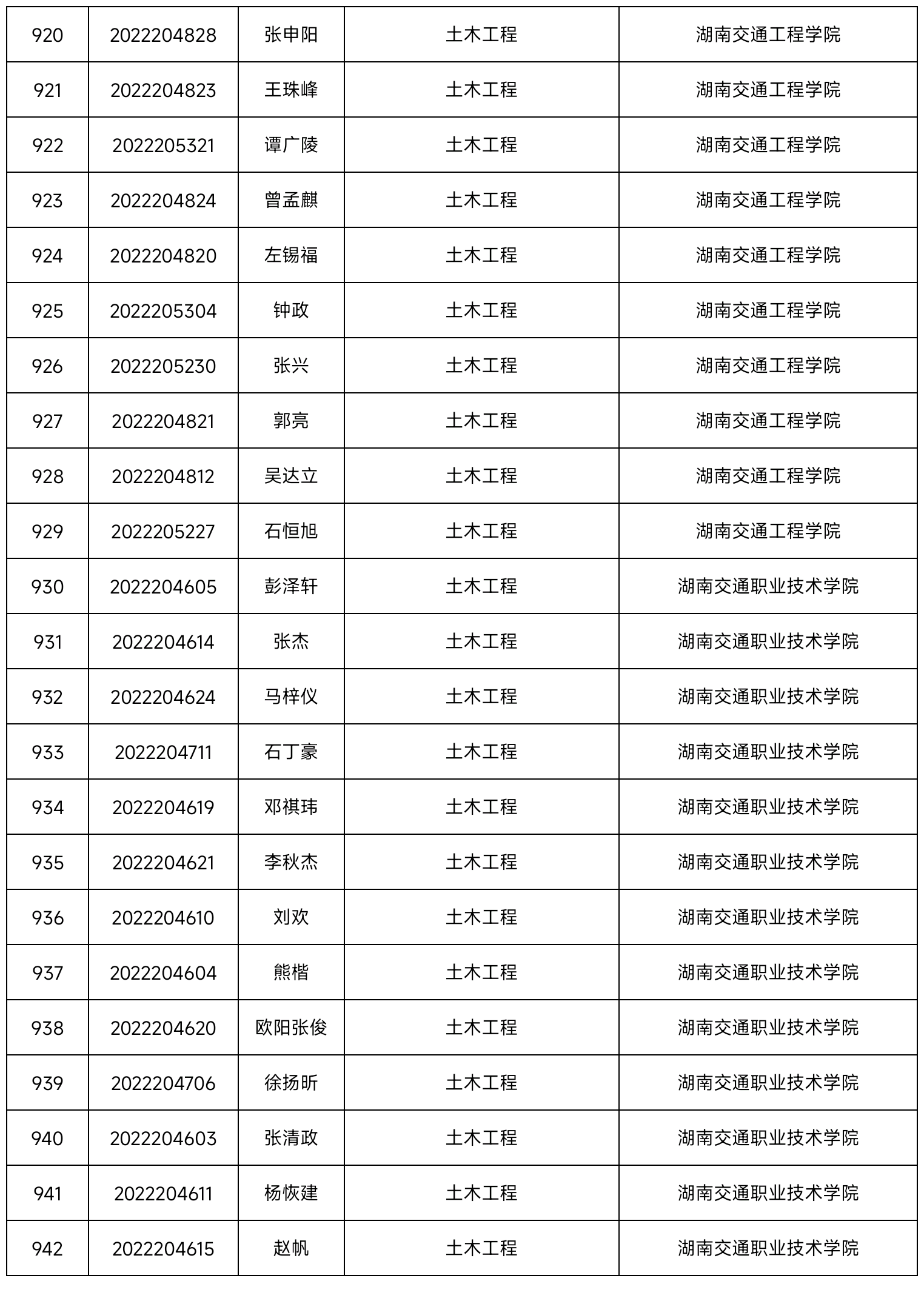 2022年best365中国官方网站专升本普通类学生录取名单