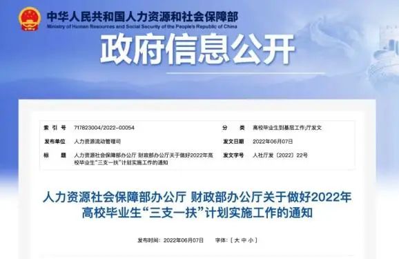 人力资源社会保障部办公厅 财政部办公厅关于做好2022年高校毕业生“三支一扶”计划实施工作的通知