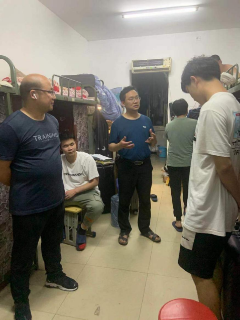 为推动学生管理工作,更好的将学生工作深入到学生中去,及时了解学生情况,特别是毕业生情况。正值端午佳节到来,何美生书记、何文华副书记、联合保卫处和全院各辅导员对7号栋宿舍进行调查走访。在走访中,何美生书记亲切慰问同学们今天有没有吃粽子,大家的学习情况如何,现在毕业设计准备情况怎么样了,有没有找到工作。
