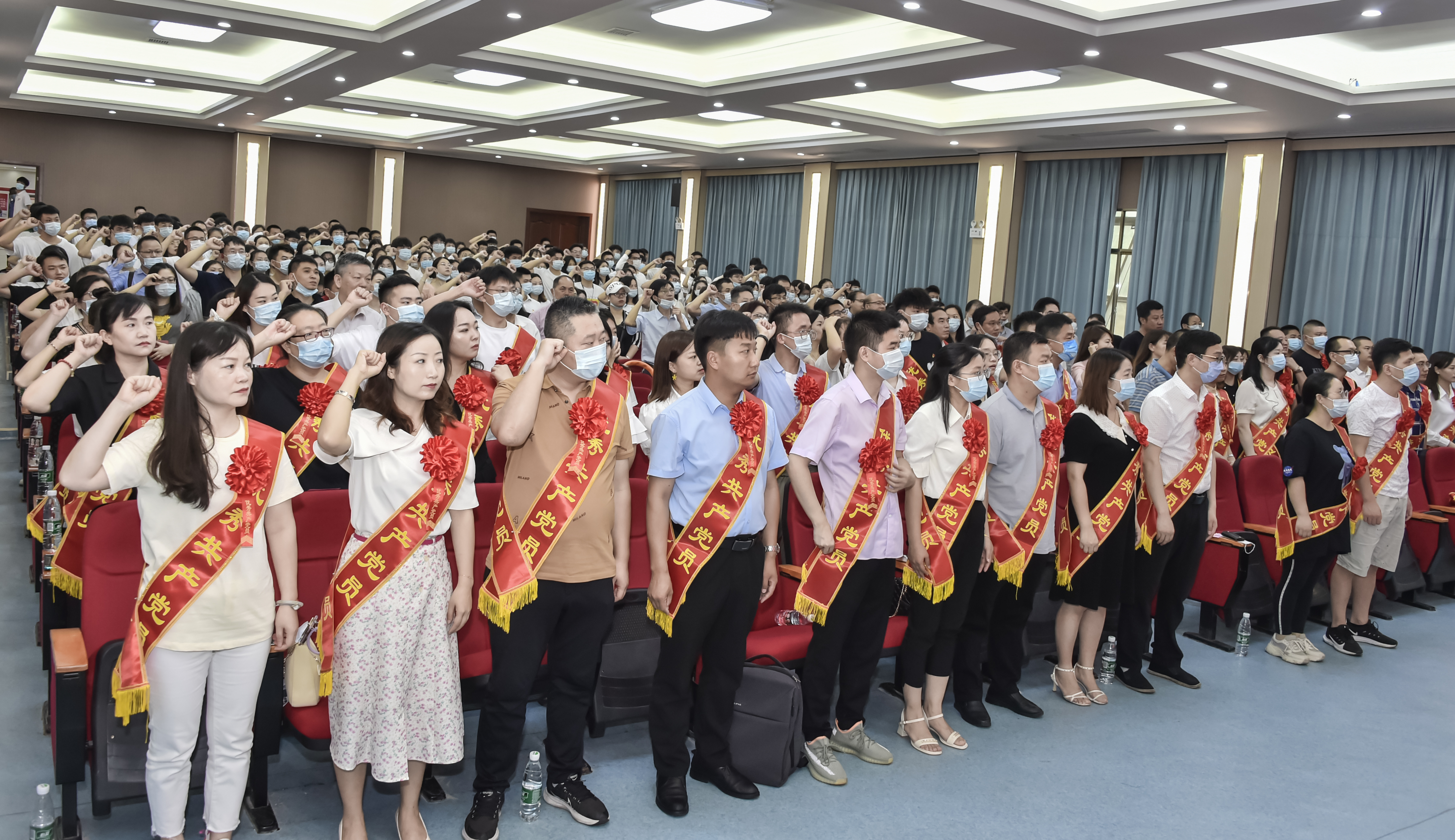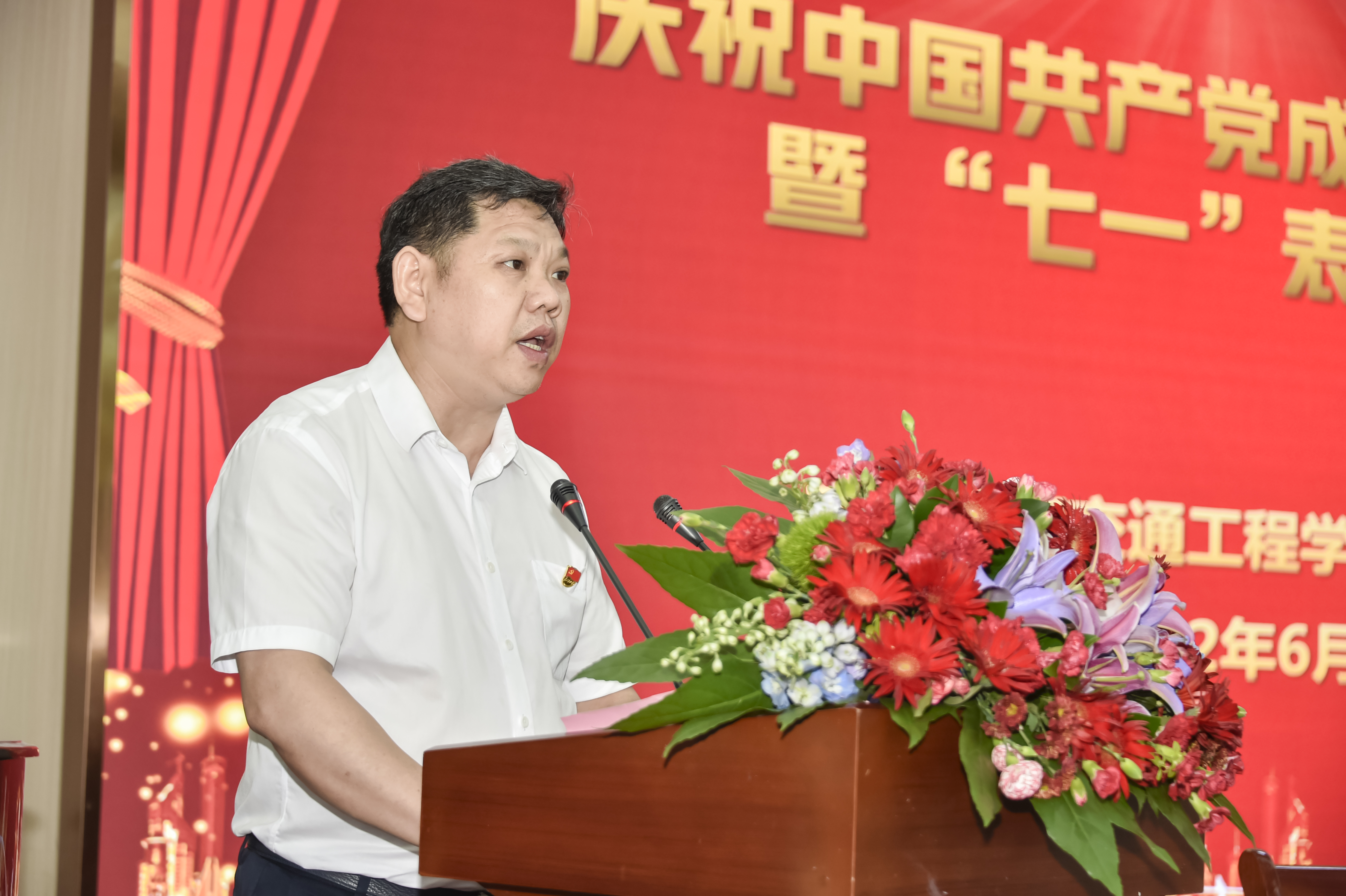 伴随着庄严的国歌声,best365官网庆祝建党101周年暨“七一”表彰大会正式开始。首先,邓丽带领新党员入党宣誓、老党员重温入党誓词;刘文君向在党50年的老党员李先聪颁发在党50周年纪念章,向李先聪同志多年来为党和国家所做的贡献致以崇高的敬意和诚挚的慰问。