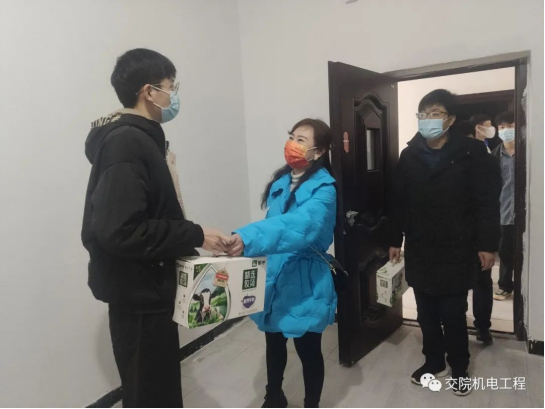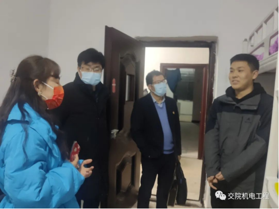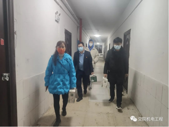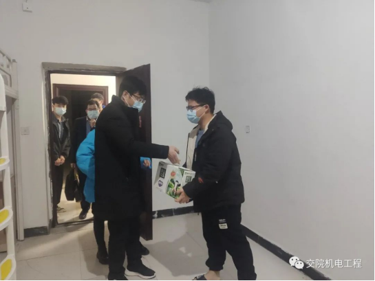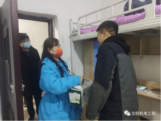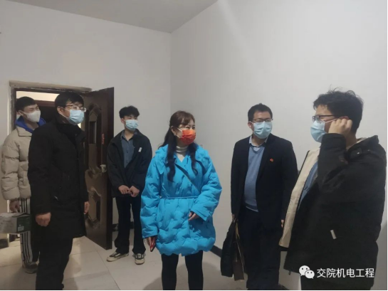 2月19号开始我院迎来第一批返校学生,随着学生的有序返校,冷清的校园再度焕发出青春活力,一切都在步入正轨。其中我院有几位学生在隔离区观察隔离。2022年2月28日晚21:00,机电工程学院党总支书记罗斐、校团委书记漆在林带领学生干事何立权和辅导员凌芳前往16栋看望隔离留观同学。