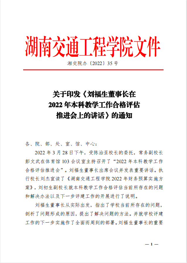 刘福生董事长在2022年本科教学工作合格评估推进会上的讲话