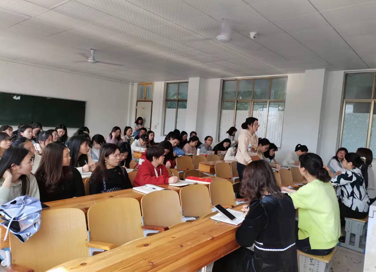 然后,护理学院党总支副书记肖桂香进行发言。肖书记讲到作为党员应做到以下两点∶认真学习, 立足岗位。作为党员要起到先锋模范作用,为学校的学士学位评估作出应有的贡献,作好自己的本职工作,以良好的工作业绩向党的二十大献礼。