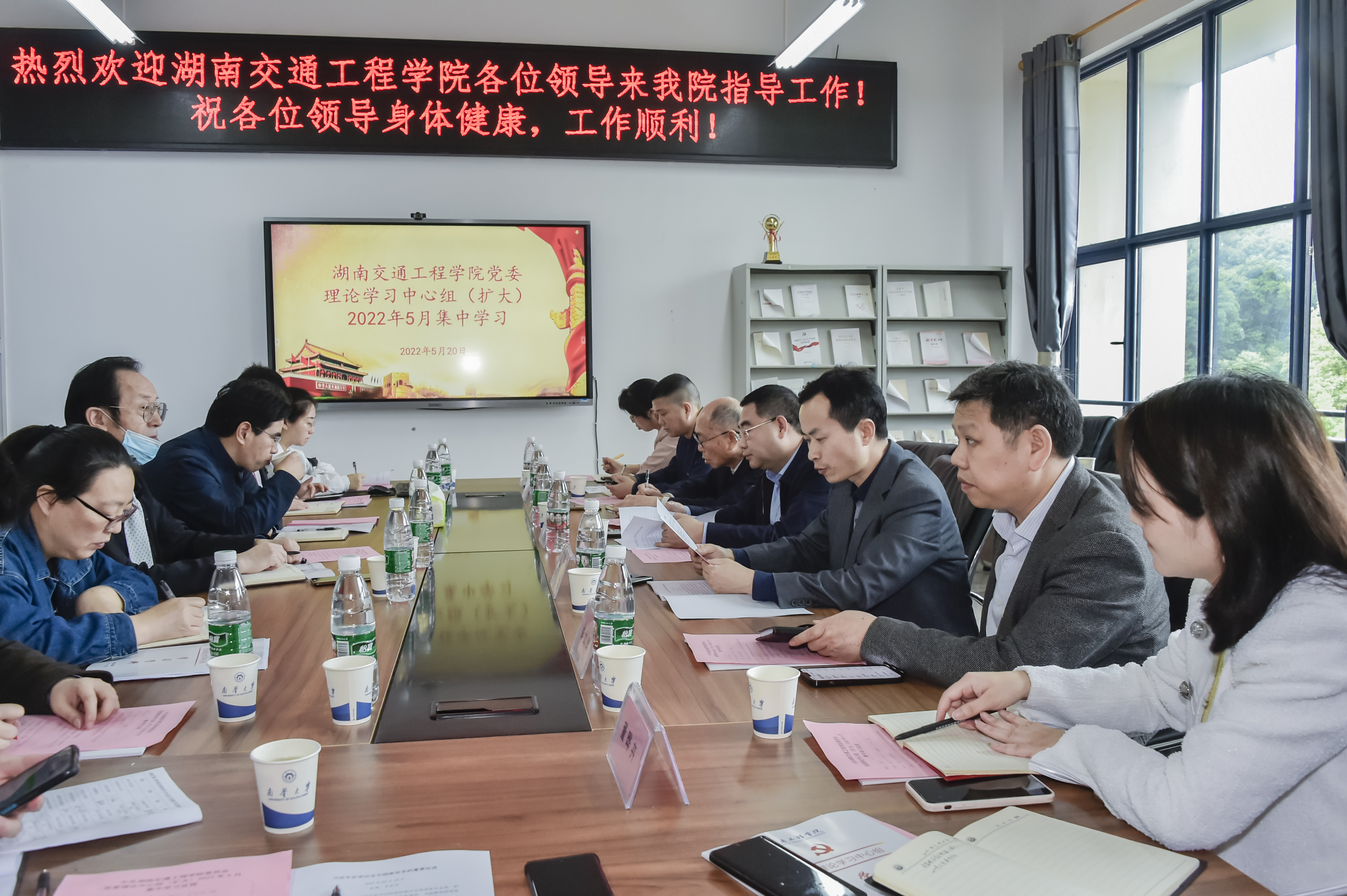 本网讯 5月20日上午,学校党委理论学习中心组(扩大)赴南华大学雨母校区开展观摩交流和集体学习研讨,深入学习领会习近平总书记关于维护安全稳定的重要论述,筑牢校园安全防线,确保校园和谐稳定。全体校党委委员,董事董晔卉,党政办、组织统战部、宣传部、纪委监察室、教师工作部、学工部、校团委、后勤处负责人,各党总支(直属支部)书记,党建组织员参加观摩学习,集体学习研讨由校党委书记刘文君主持。