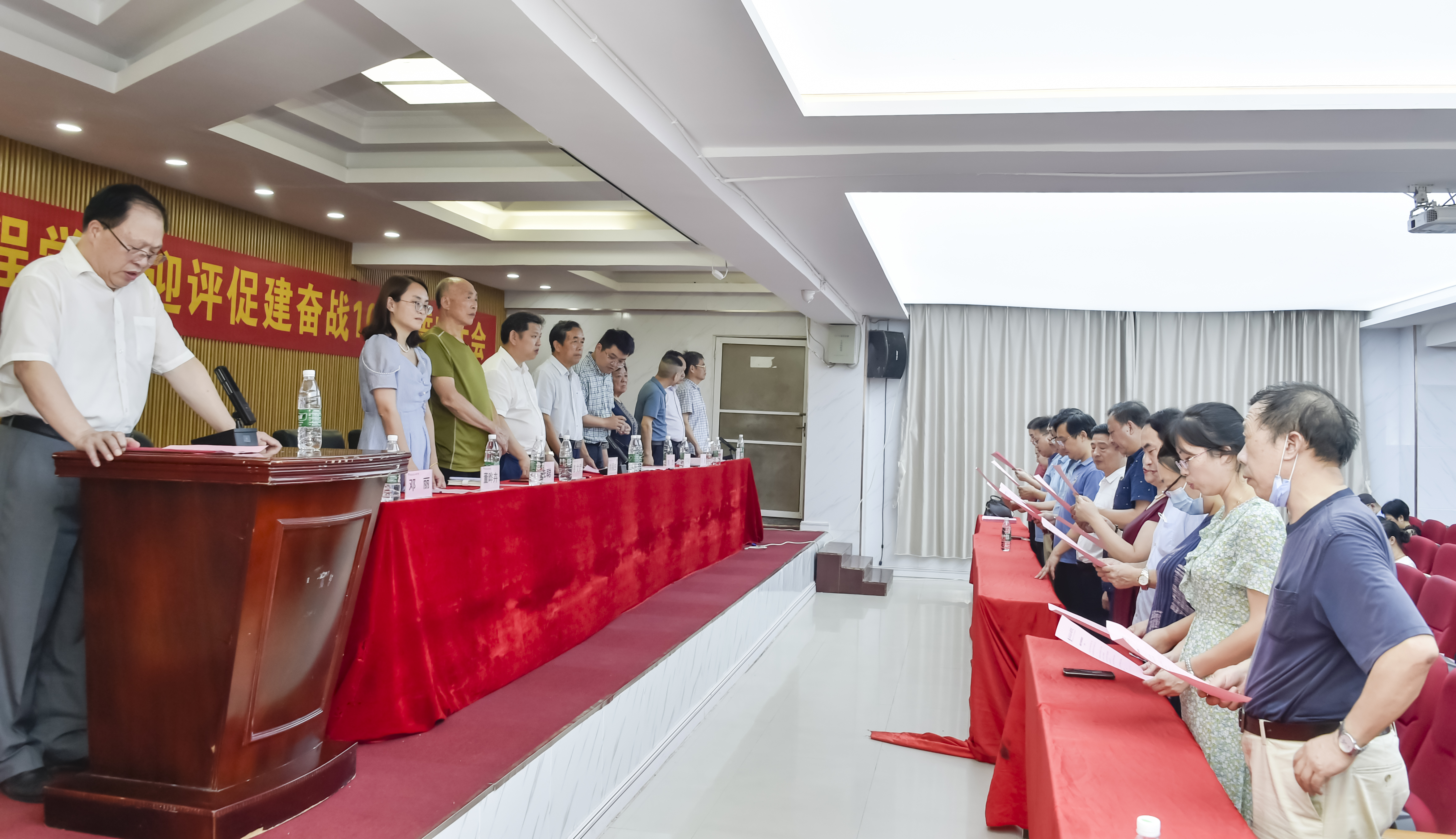 ▲肖珍领衔中层干部宣读承诺书