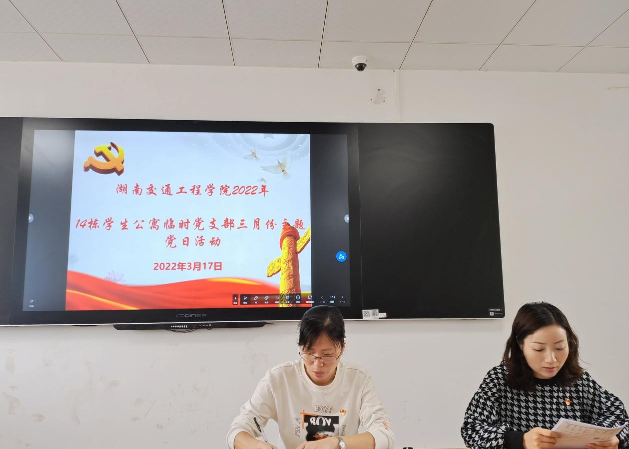 3月17日中午,14栋学生公寓临时党支部在教学楼209教室召开三月份主题党日活动。