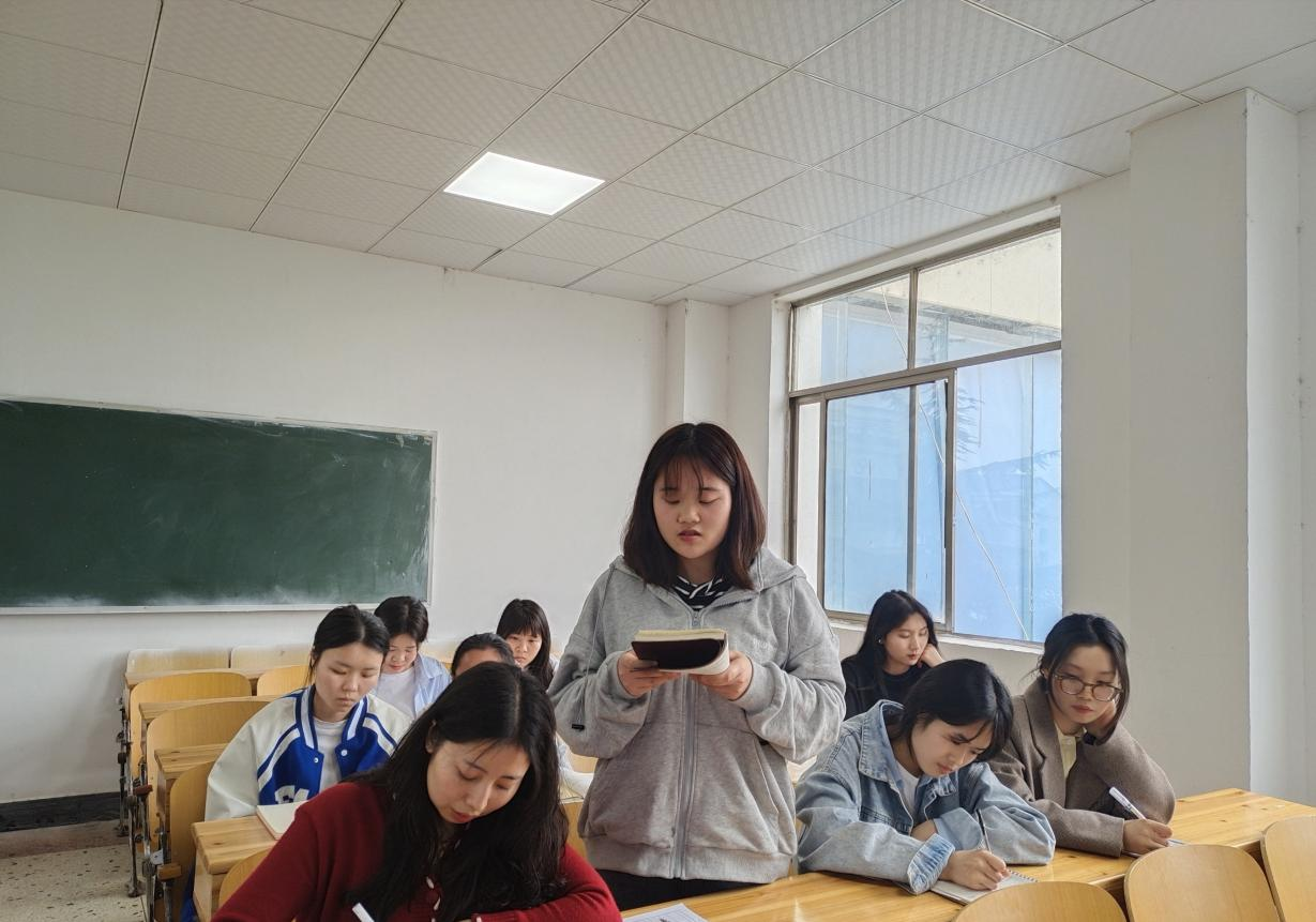 护理学院十四栋社区党支部书记刘娣带领全体学生进行领学