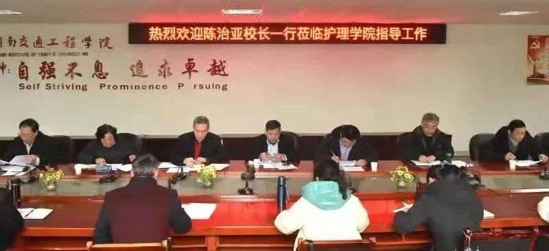 311日下午230,为认真落实应用型人才培养目标,扎实做好本科教学工作合格评估各项基础工作,校长陈治亚、荣誉校长刘平娥、执行校长刘杰、党务副校长彭文武等12人一行莅临护理学院进行工作指导,并在护理学院二楼会议室与护理学院管理团队召开了会议。护理学院王兵院长、护理学院党总支书记邓丽、吴端生副院长、护理学院党总支副书记兼团总支副书记肖桂香等教职员工出席了本次会议。