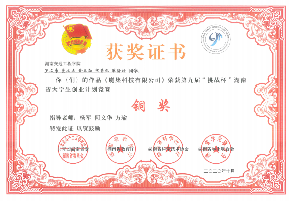 best365官网获得湖南省第九届“挑战杯”大学生创业计划竞赛7个奖项